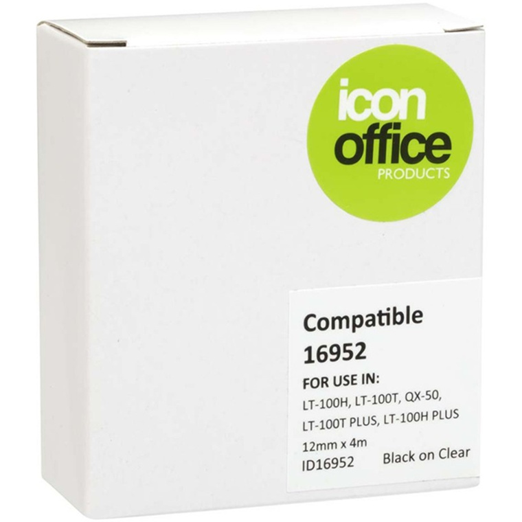 Icon LetraTag Tape Compatible for Dymo 16952 12mm x 4m - Black on Clear