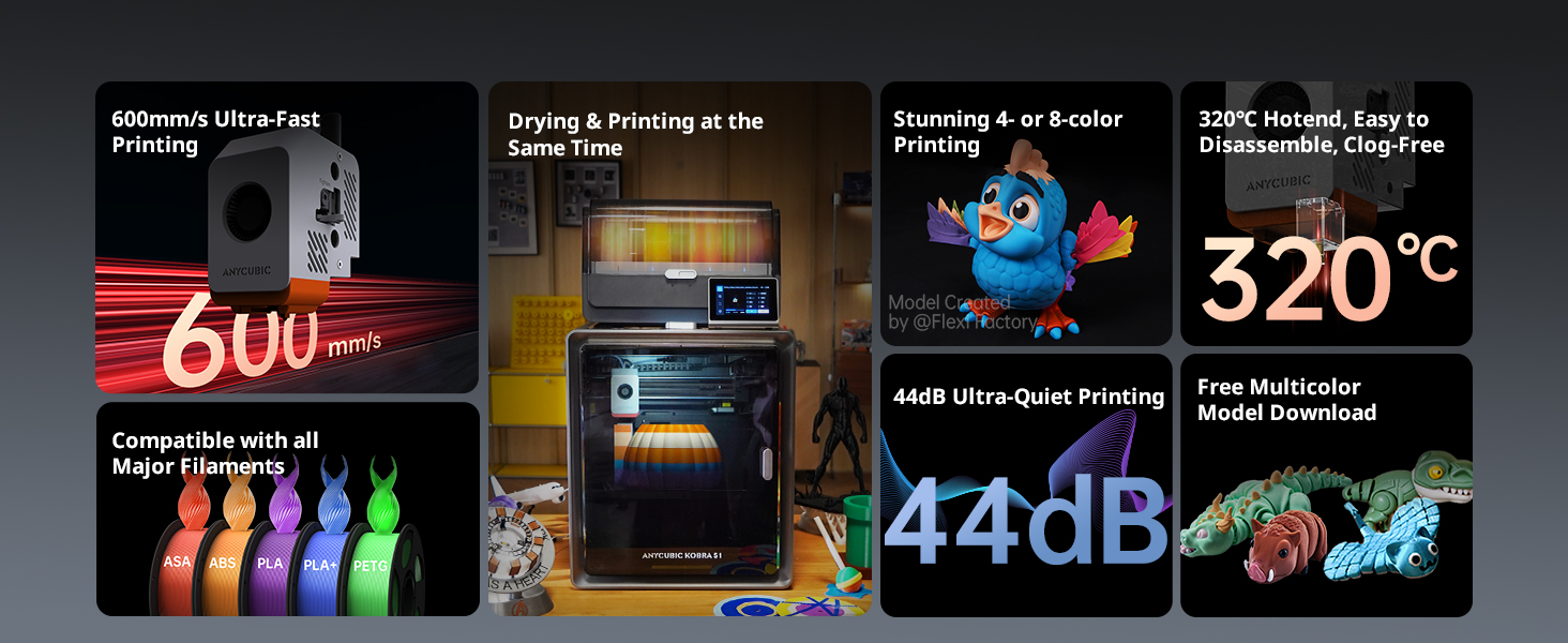 Anycubic 3D Printer kobra S1 Combo Multi-Colors Combo Pack