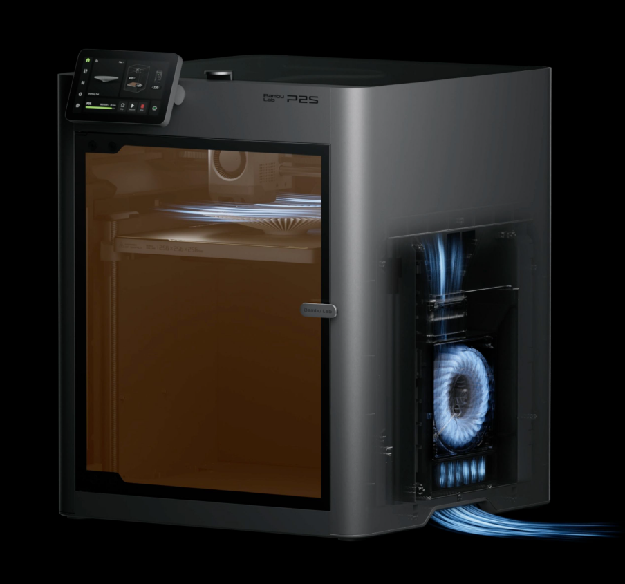 Bambu Lab P2S Fully Enclosed 3D Printer Up to 600mm/S - Build Size 256 x 256 x 256mm AI Failure Detection, Cold-Air Cooling, Auto Flow Dynamics Calibration, Active Venting Filament Drying, 5-Inch Touch Screen