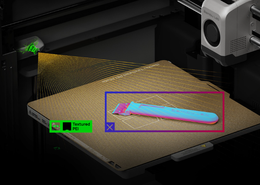 The P2S introduces advanced AI computer vision that actively detects common printing issues such as spaghetti, nozzle blobbing. It also cross-checks your build plate type against your slicer settings, ensuring a safe and accurate start to every print job.