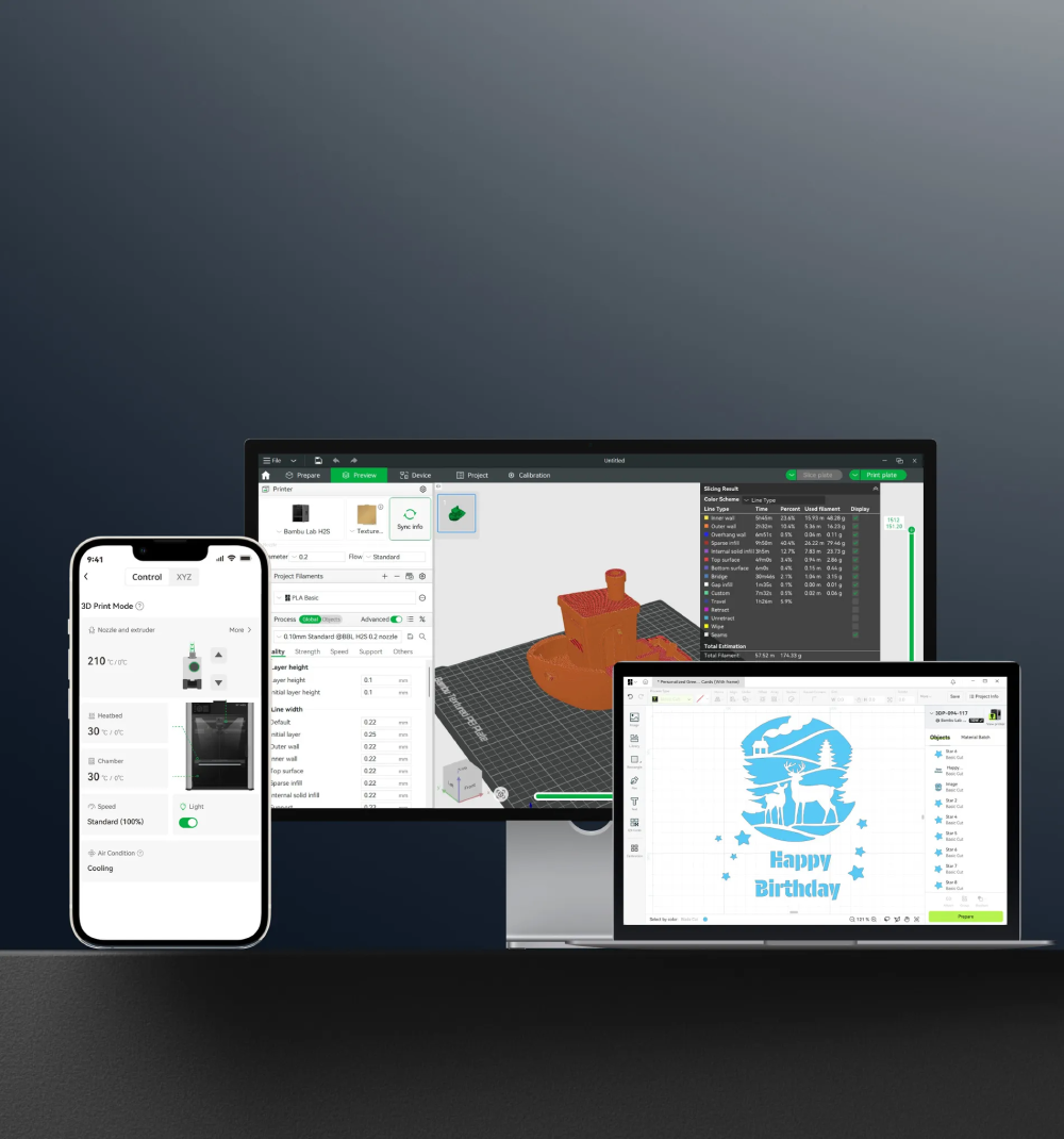 Featuring a 350 °C hotend and a 65 °C actively heated chamber, it supports the entire Bambu filament lineup-from PLA and PETG to PC and PPA. With closed-loop fan control and precise thermal management, the H2S minimizes warping and deformation while improving layer adhesion. Build large, high-performance parts that are as functional as they are strong.