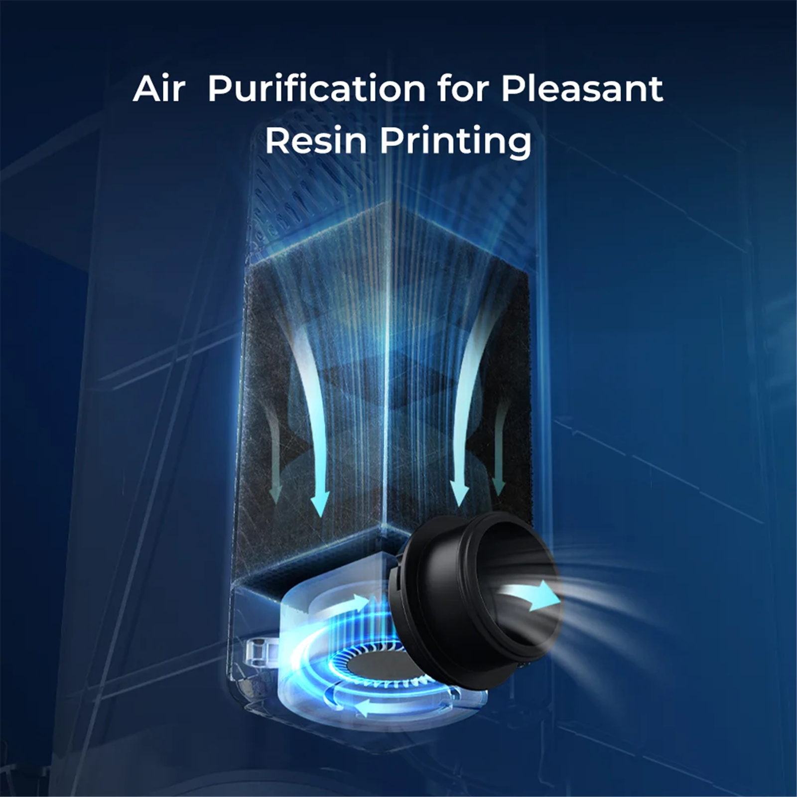 Powered and controlled via the printer directly, it includes a replaceable activated carbon filter that is 5.8 times larger than others. It absorbs irritant odor efficiently. A vent hole is at its back to connect a vent tube.
