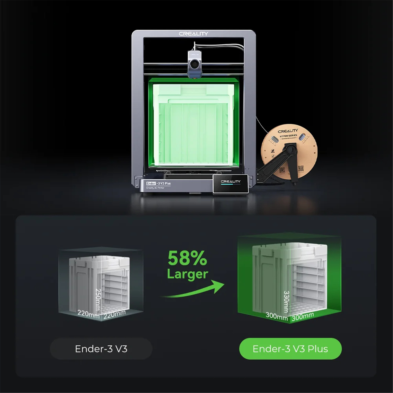 Creality Ender-3 V3 Plus FDM 3D Printer Typical Printing Speed 300mm/s - Up to 600mm/S - Build Size 300 x 300 x 330mm - New High-Speed Direct Drive Extruder - Quick-Swap Nozzle - Touch Screen - WiFi