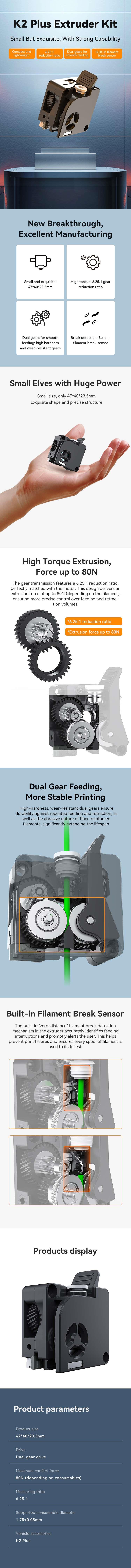 Creality Accessories K2 Plus Extruder Kit Small But Exquisite - with Strong Capability - Compact & Lightweight - 6.25:1 Reduction Ratio - Dual Gears for Smooth Feeding - Built-in Filament Break Sensor