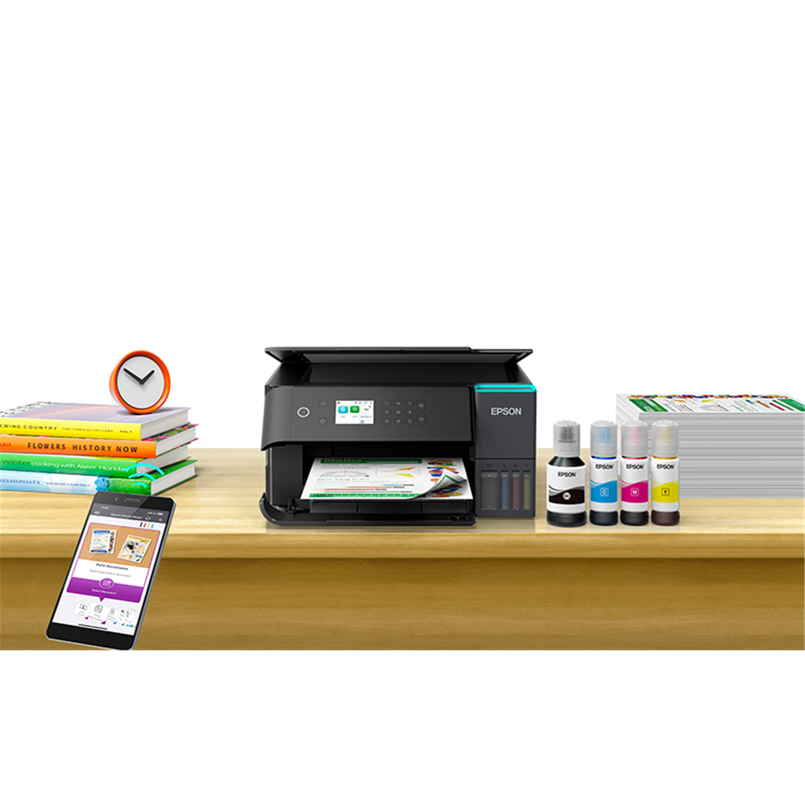 - Cartridge-Free Printing - integrated high capacity ink tank system.