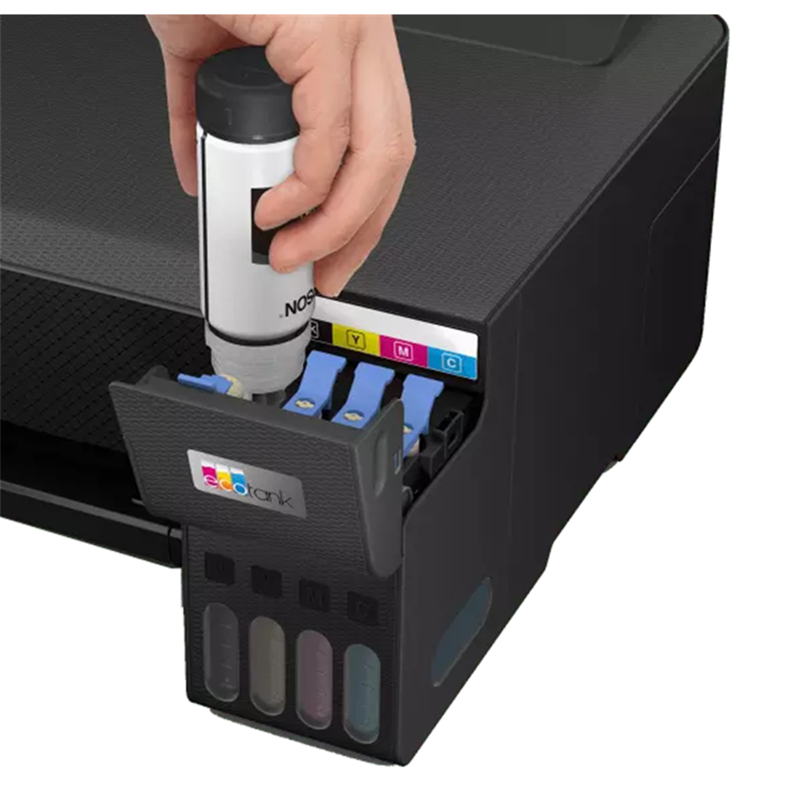 The Epson EcoTank ET-1810 wireless single-function printer offers cartridge-free printing with easy-to-fill, supersized ink tanks. Each replacement ink bottle set includes enough ink to print up to 4,500 pages - equivalent to about 203 individual cartridges, that means less waste. Exclusive uniquely keyed EcoTank bottles make it easy to fill each colour tank.