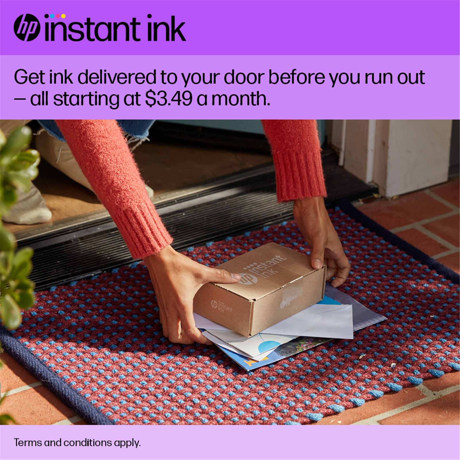 With an Instant Ink subscription, you can get ink delivered directly to your door before you run out. Save up to 50% with Instant Ink. Enroll to get ink with automatic delivery. Get peace of mind with the flexibility to change plans or cancel anytime at no cost.