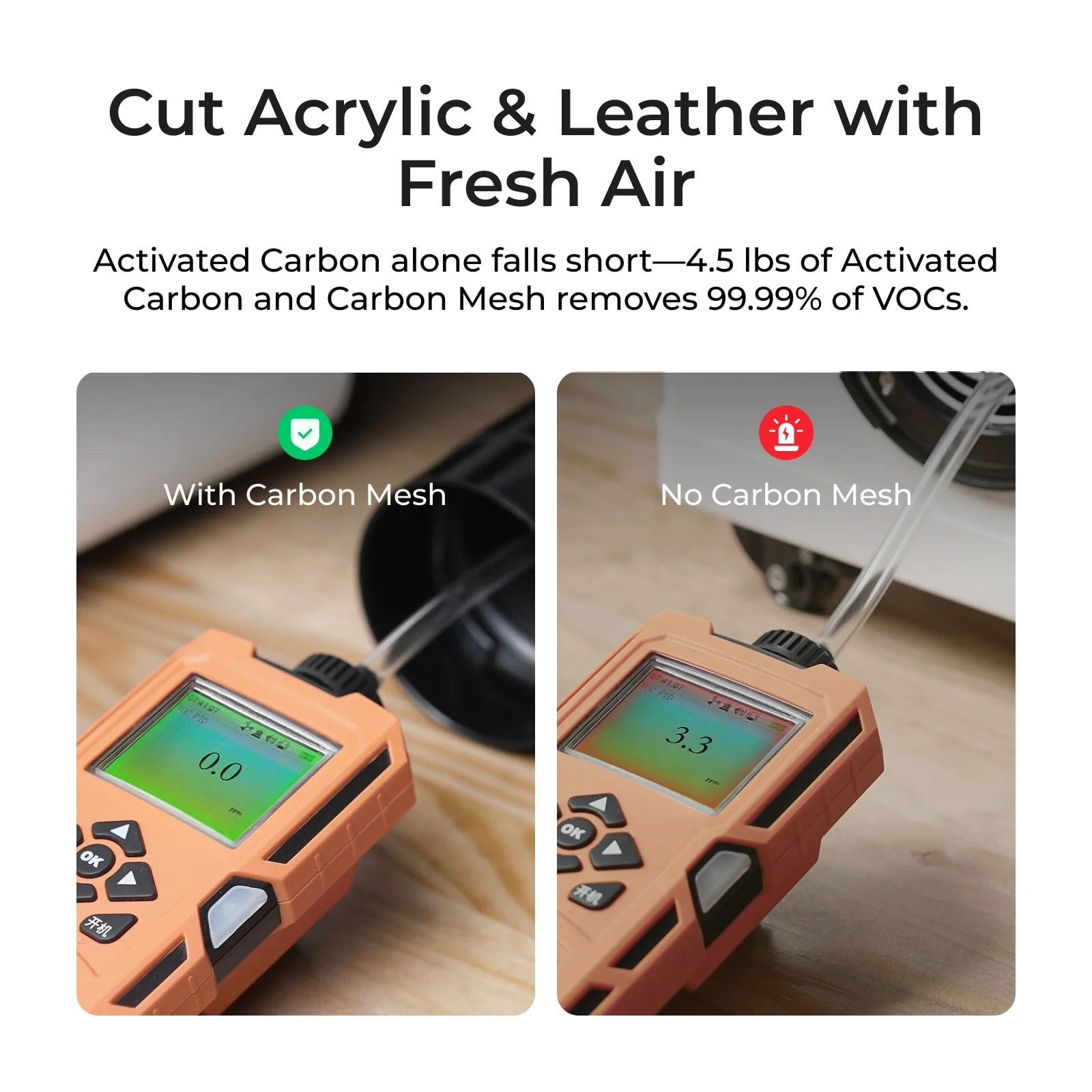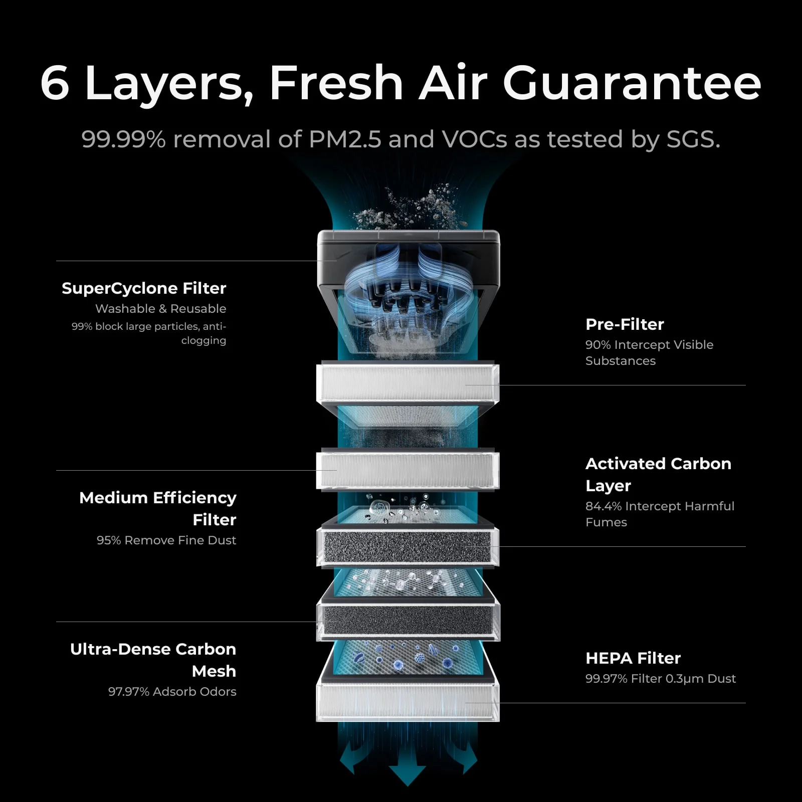 - Ultra-Dense Carbon Mesh Filter: 300 hours