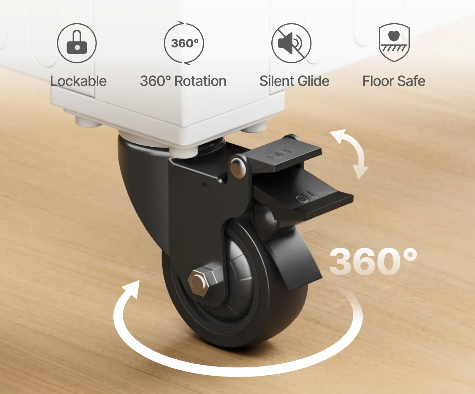 Lockable, 360° rotation casters