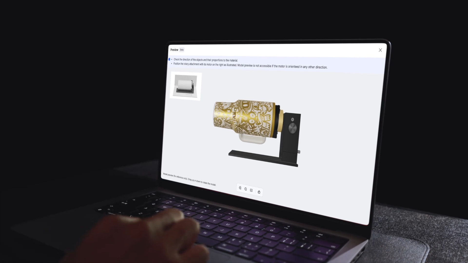 Your canvas now includes cylinders, spheres, and rings. Plus, unlock exclusive techniques, like full-wrap engraving on revolving vases, and accelerated batch production.