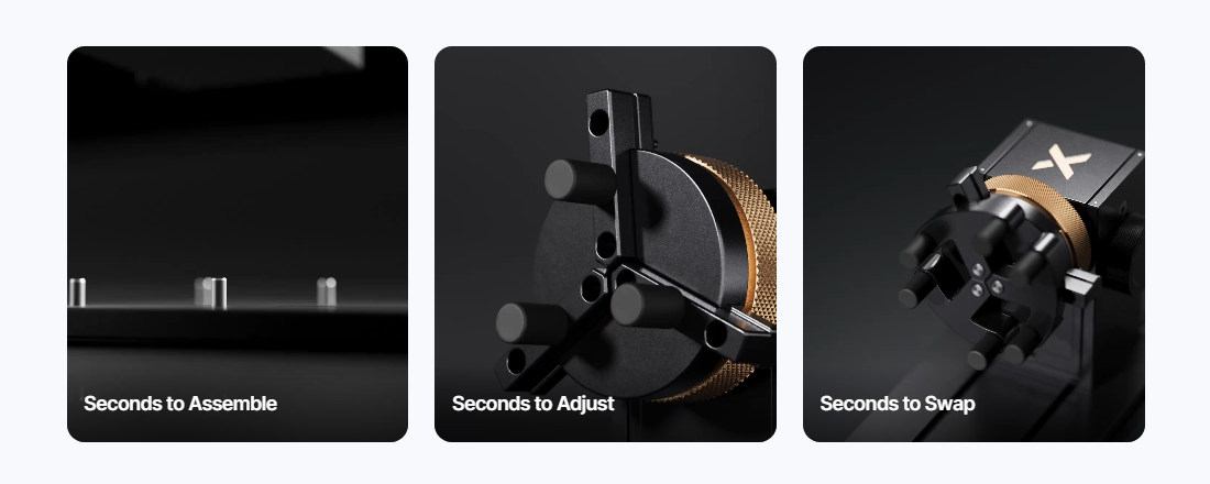 - Effortless Setup: The MagSwapTM design lets you quickly and easily assemble the rotary and switch between roller, chuck, sphere,and ring modes.