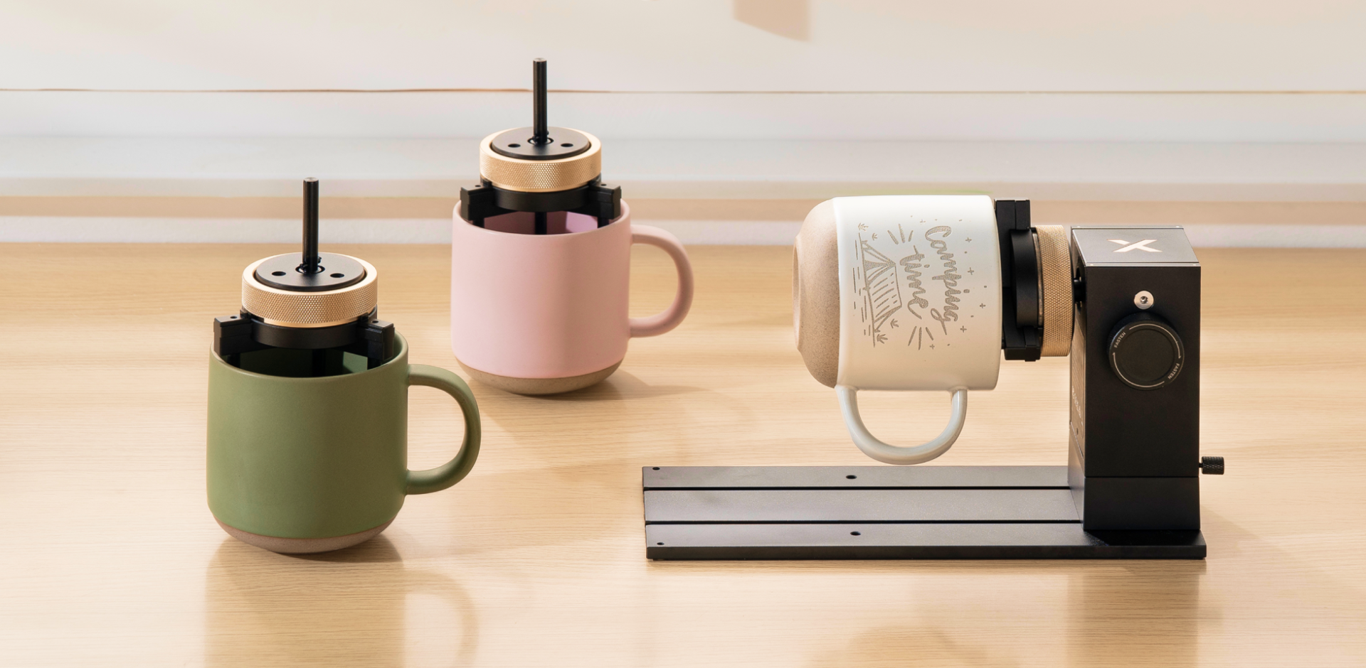 Efficiently handle batch orders of mugs, long objects, or rings by securely preparing the next item while the first one engraves.