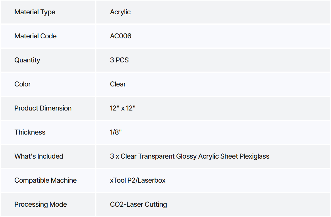 - Compatible models: Clear Transparent Glossy Acrylic can be laser-cut by xTool Laserbox.