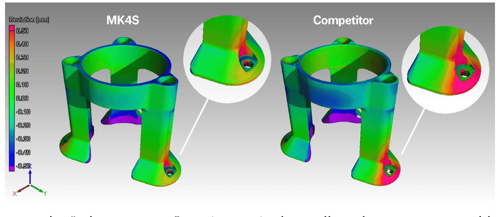 Your creations should turn out precisely as designed, especially when they require a perfect fit. The MK4S ensures that by delivering exceptionally accurate prints. See the accuracy comparison measured using a CT scan: