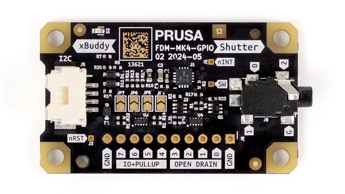 The MK4S is compatible with two new optional addons for enthusiasts and modders. First, the GPIO "hackerboard" allows you to control external electronics using G-commands. And we have also introduced an accelerometer addon for those who made extensive changes to the Nextruder. You can find more details on their respective product pages.