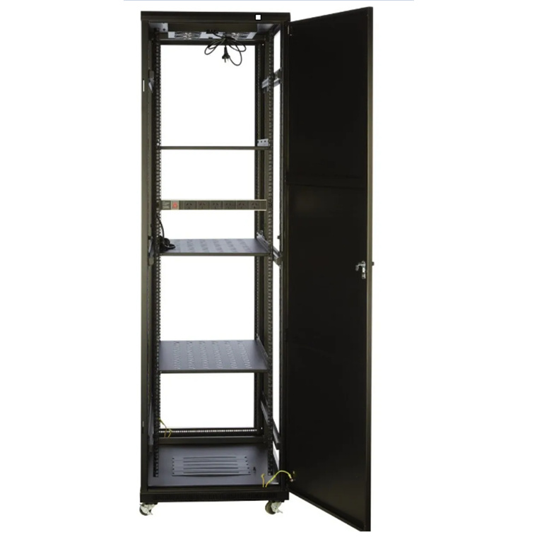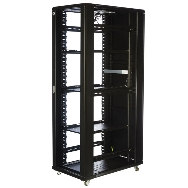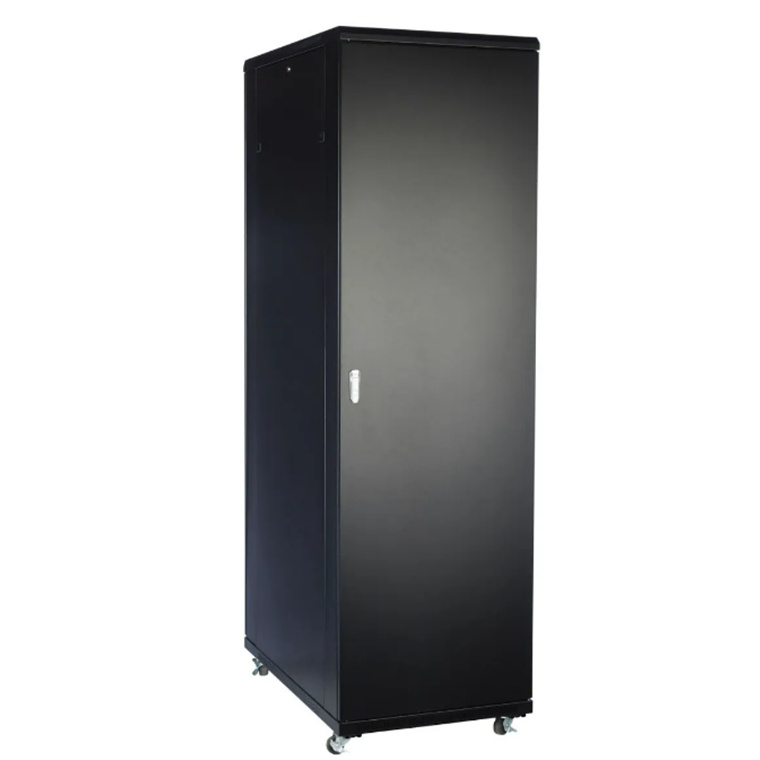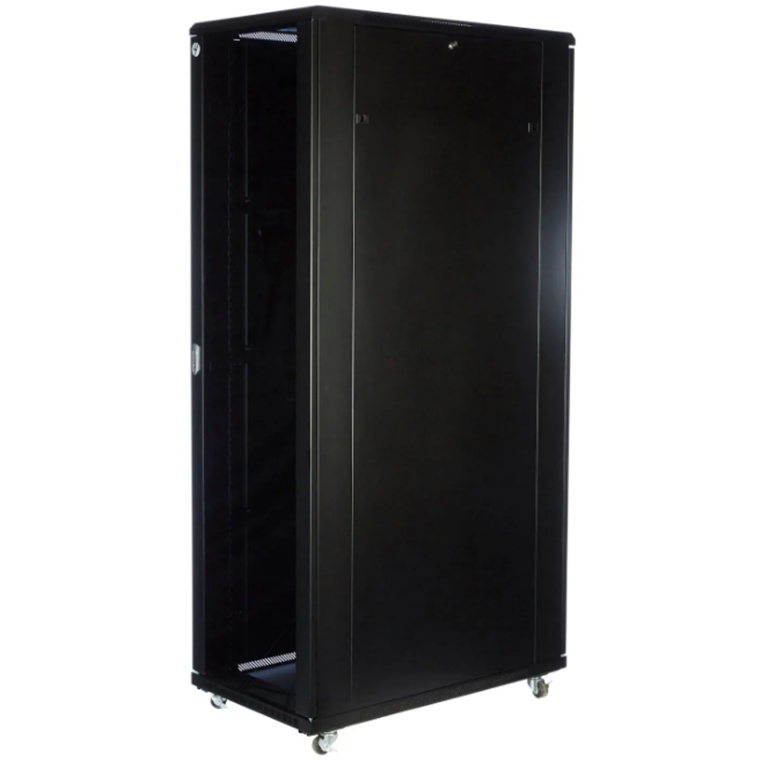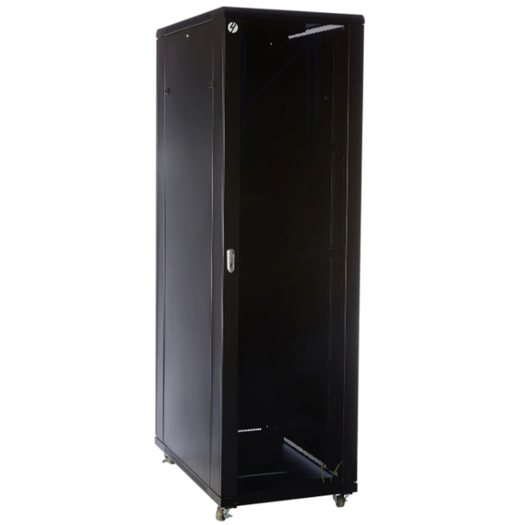 The high-quality freestanding server rack is supplied fully assembled with a solid top and base, plus removable side panels, Lockable Tempered Glass Front Door and Solid Steel Side & Back Doors all lockable for added security. The new lockable side door design is created to get maximum flexibility with minimum footprint without sacrificing security.