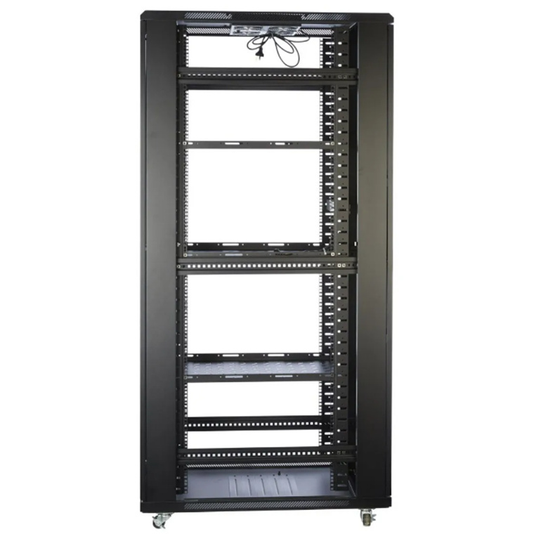 This network cabinet provides flexibility for customers who know exactly what they require of their server rack. Possible usage applications include housing server room, DVR, security equipment, routers, patch panels, switches and rackmount equipment, Telephone Systems and PABX equipment, Network and Communications Equipment; UPS Equipment; Professional Audio Equipment; and other 19" Rack Mountable Equipment Applications.