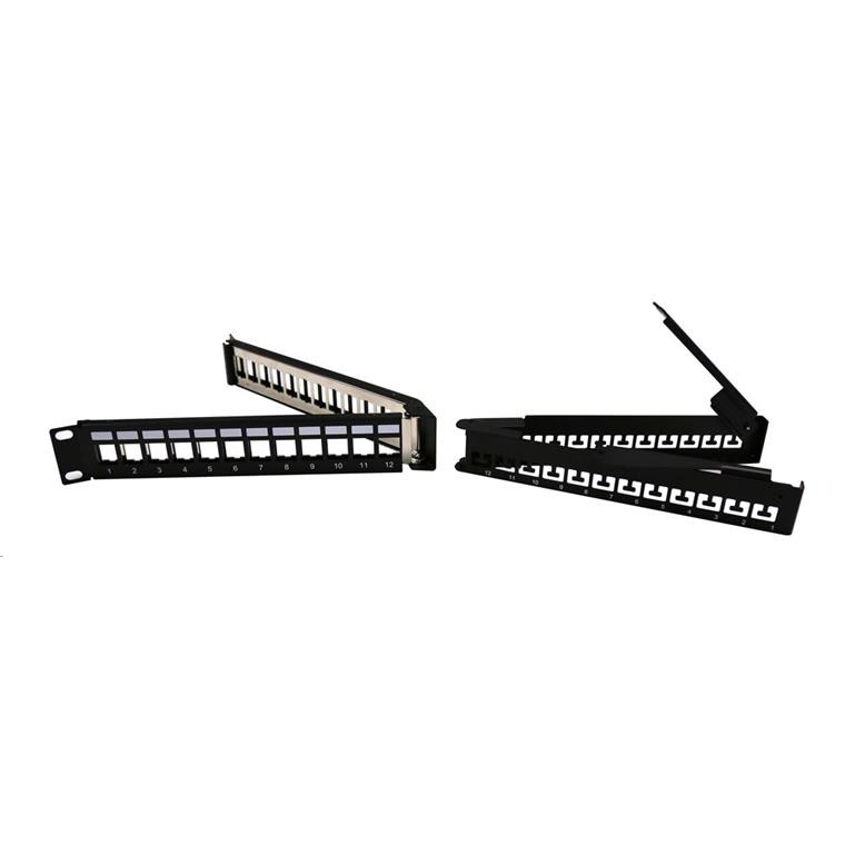24 Port Angled Unloaded Keystone Foldable Panel. 1RU, 19" FTP with Cable Support Bar