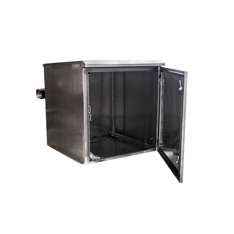 Dynamix RODWSS24-400 24RU Stainless Outdoor Wall Mount Cabinet(610x425x1200mm). SUS316 Stainless Steel Construction. IP65 rated. Lockable front door. No fans or filters. Wall mount accessories included.