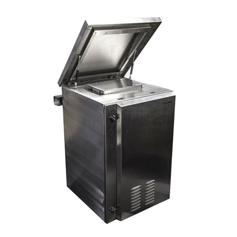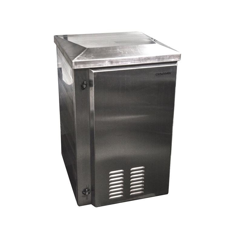 DYNAMIX 24RU Stainless Vented Outdoor Wall Mount Cabinet (610 x 425 x 1200mm). SUS316 Stainless Steel Construction. IP45 rated. Supplied with dual extractor fans & input/output air filters.