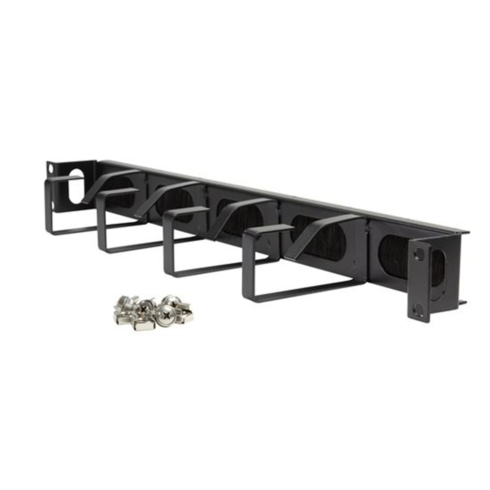 DYNAMIX 1RU 19? 40mm Recessed Brush Cable Management Bar. Dimensions 44x88x485mm, supplied with Cage Nuts.