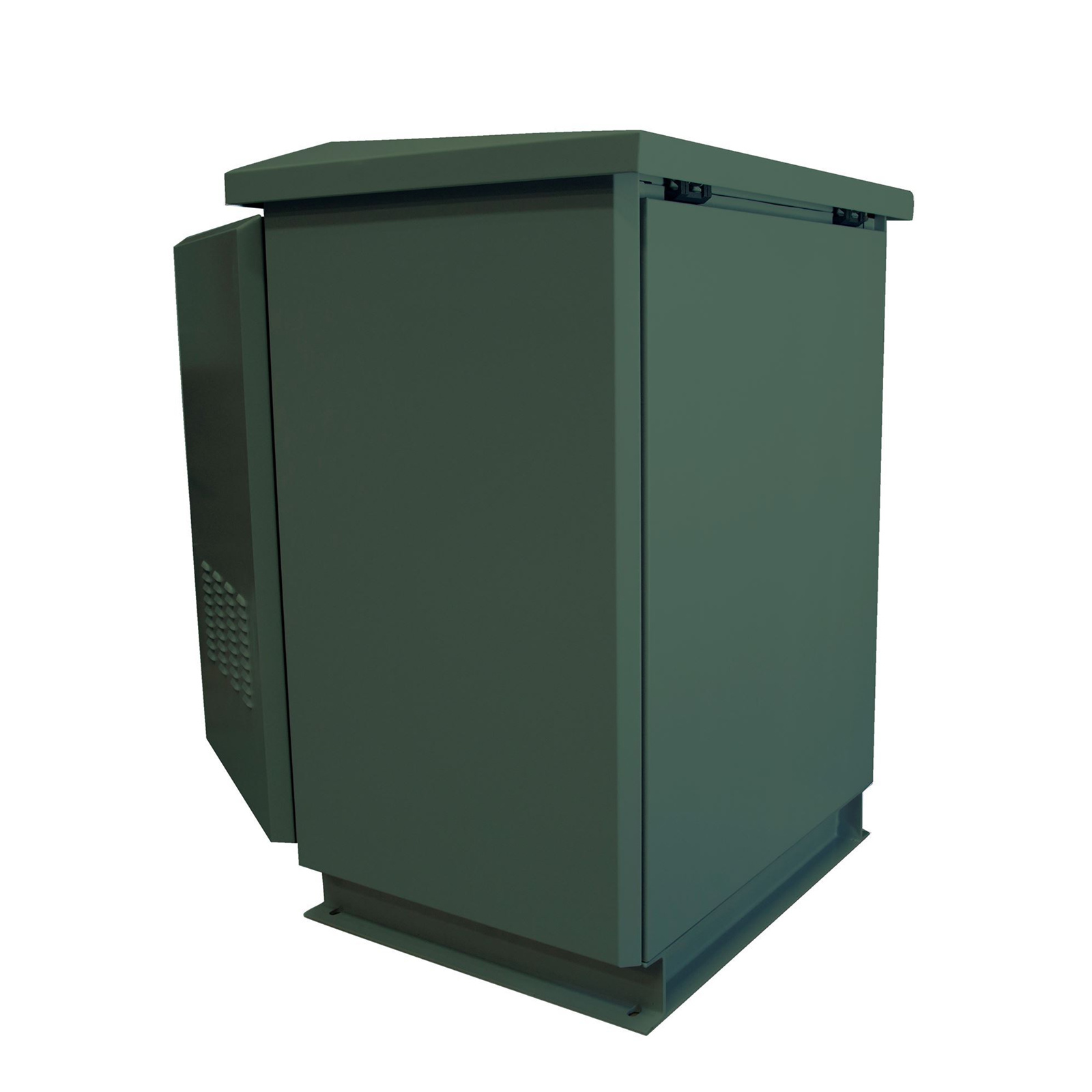 - Cabinet design allows natural wind cooling through filtered vents on the front door and venting under the lip of rain hood