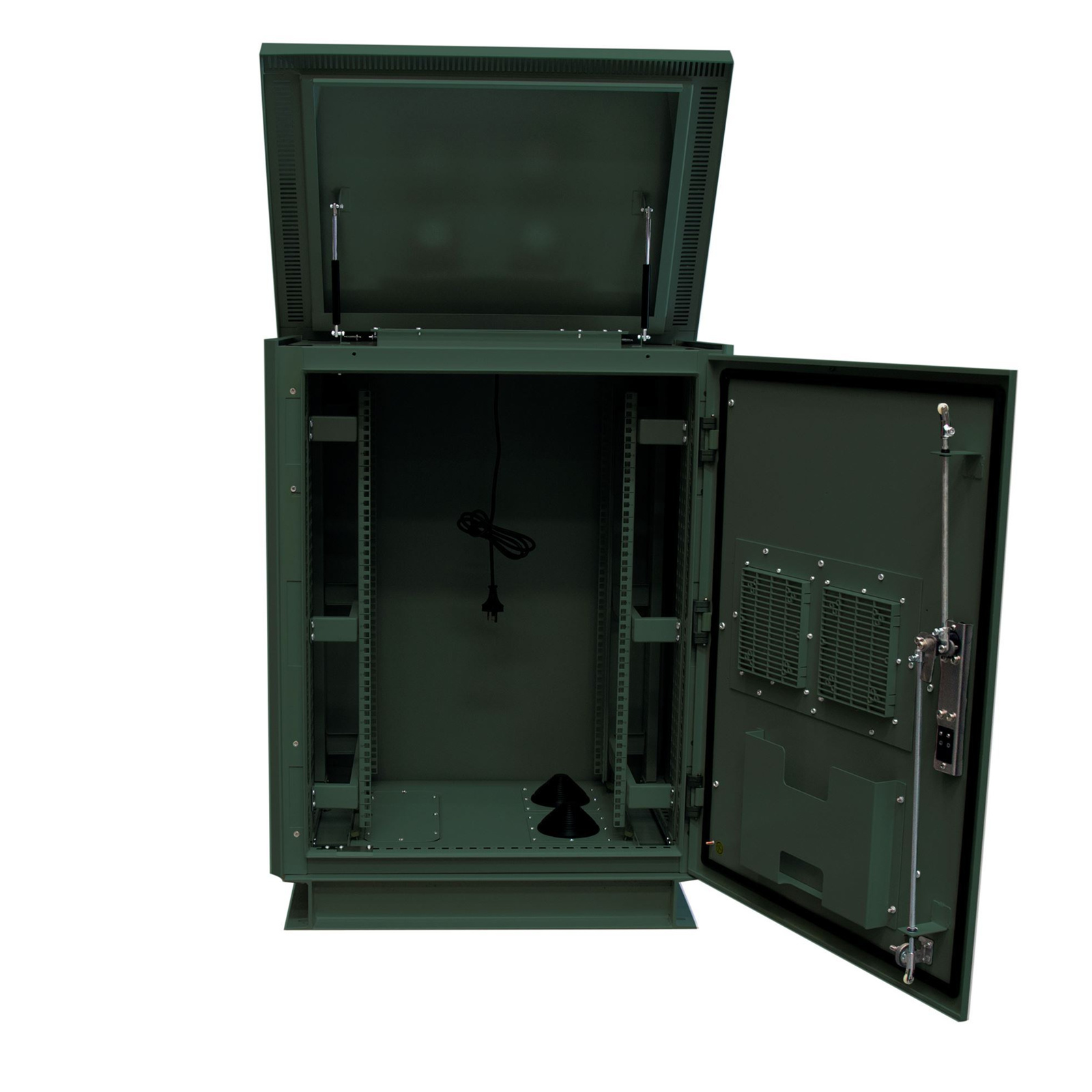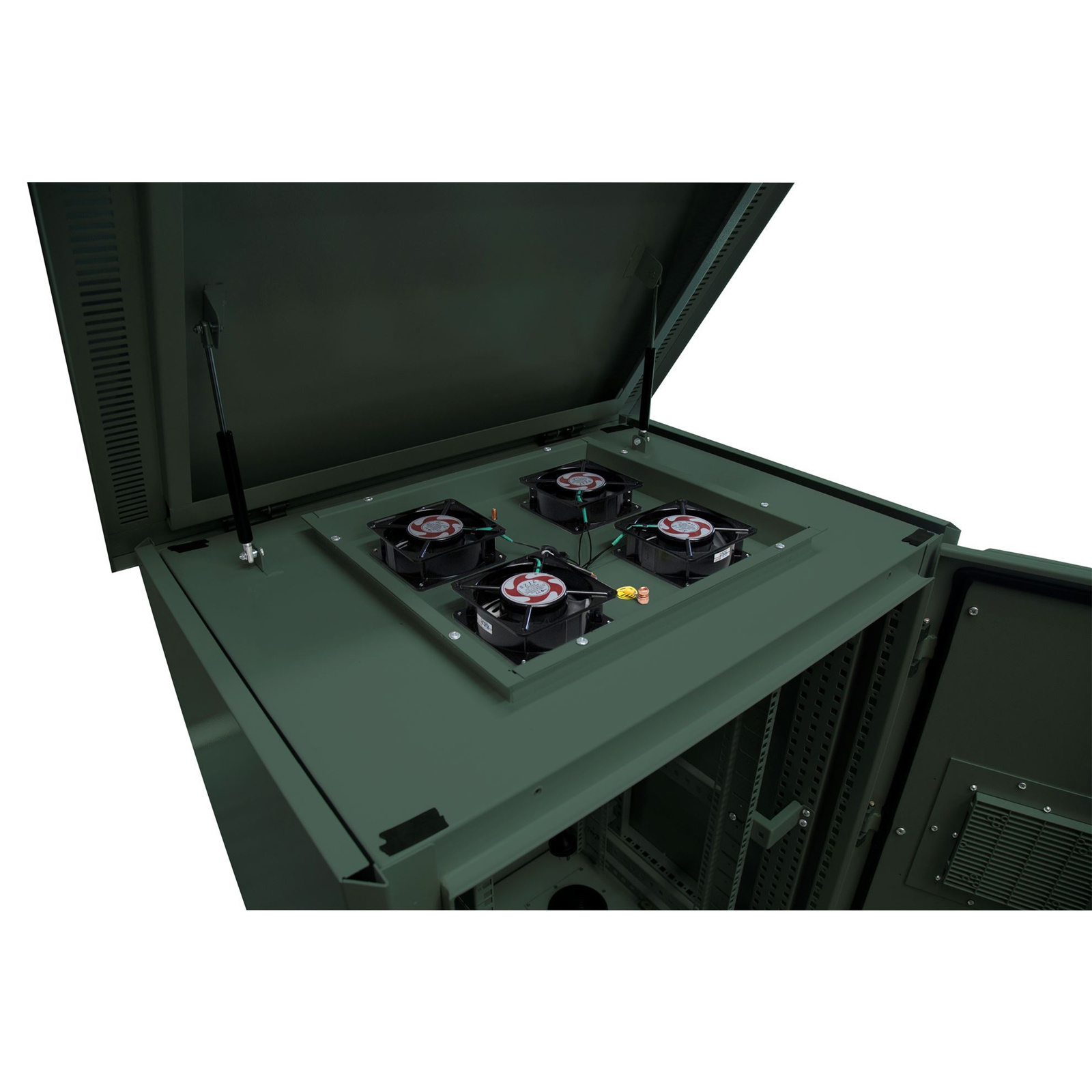 - Cabinet also has four fans with dustproof cover in the top of the cabinet for greater airflow/cooling