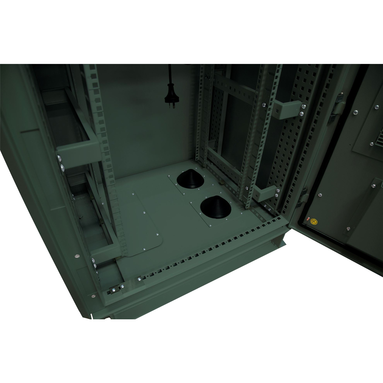 Dynamix ROD27-8X8FG 27RU Outdoor Freestanding Cabinet. (800 x 800 x 27U) IP45 rated. Angled pivoting rain hood. Double 25mm heating protection. Includes 10x cage nuts. Forest Green Colour
