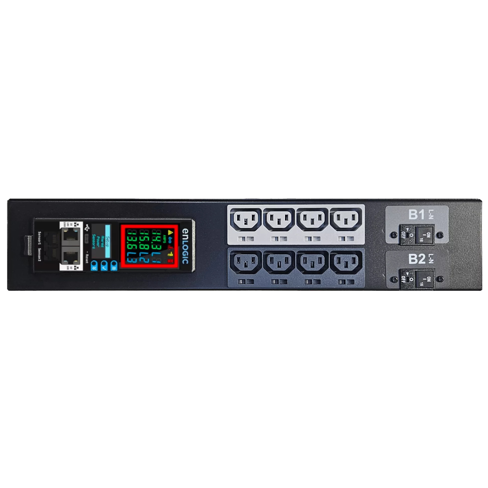 Enlogic Advantage Series Outlet Metered, Intelligent PDU Single-phase 32A input with (24)C13 & (4)C19 outlets. 2x 16Amp Hydraulic Magnetic Circuit Breakers.