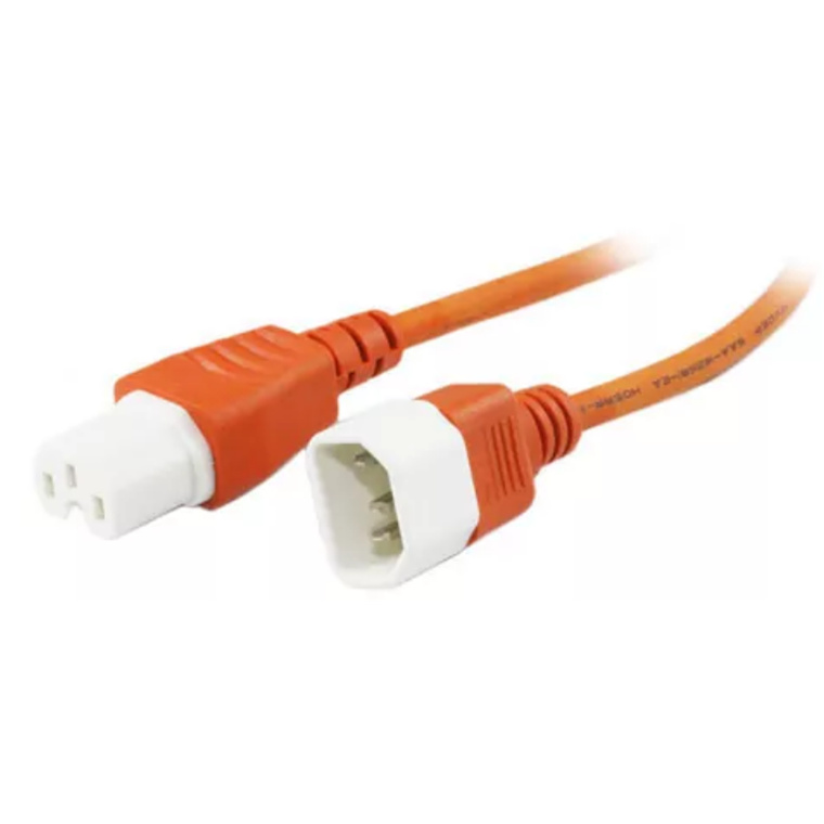 RackPower CM1CH150N 10A C14 IEC plug to 10A C15 IEC 120 Degree High Temperature Socket on 1.5m 1mm2 Orange Rubber Lead