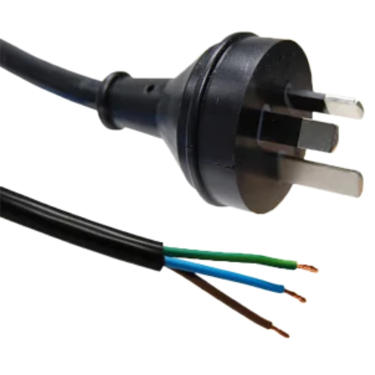 10A 3 pin plug on 10A 2m 1mm2 flex to bare end