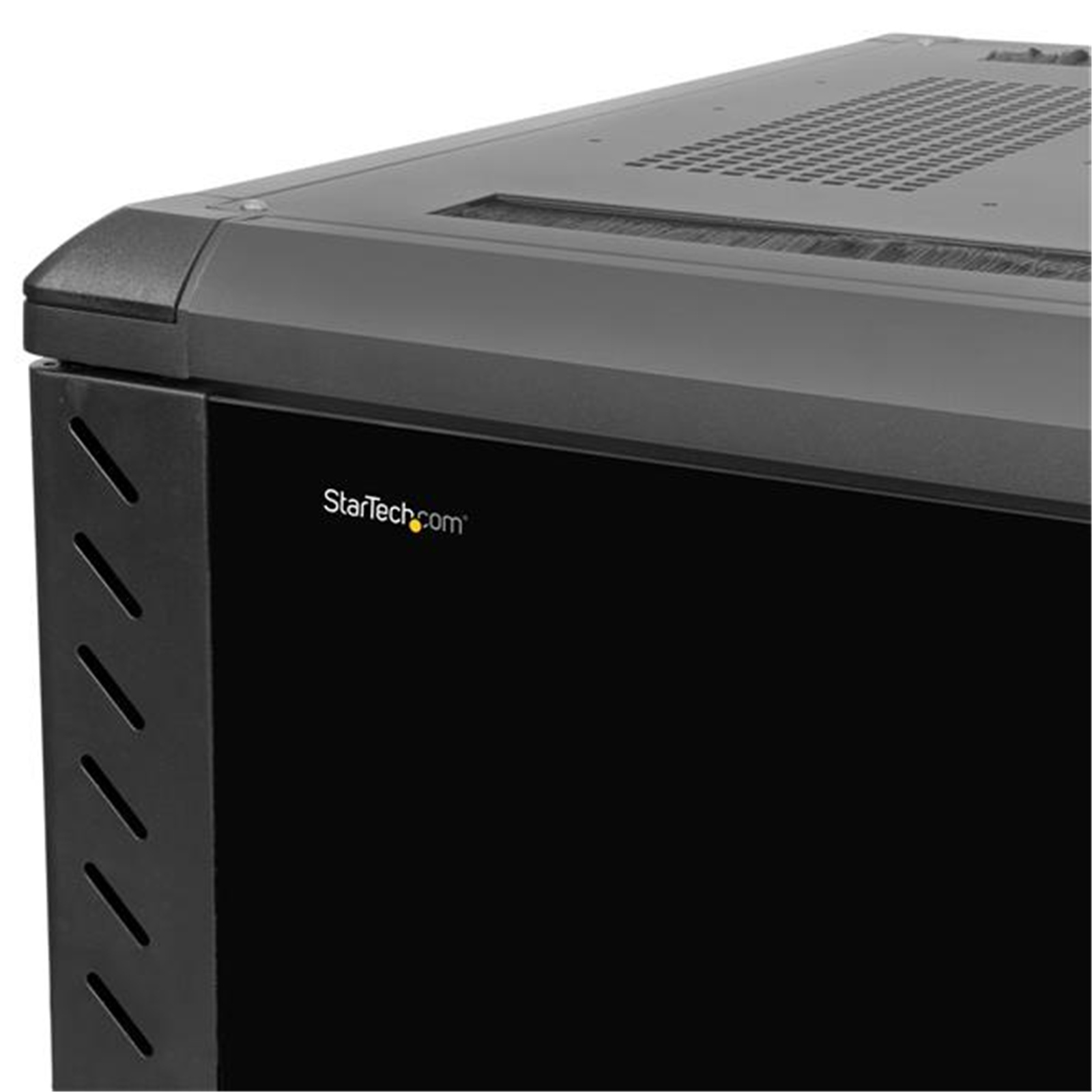 The top ceiling panel features square venting holes that are cage nut compatible, which provide mounting points that enable you to add additional equipment at the top of your rack.