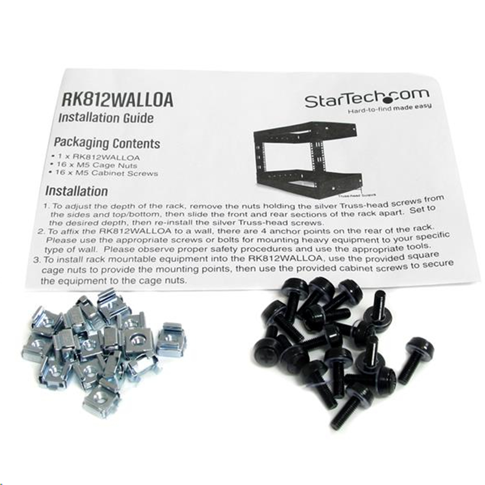 StarTech.com 8U 19" Wall Mount Network Rack - Adjustable Depth 12-20" 2 Post Open Frame Server Room Rack for AV/Data/ IT Communication/Computer Equipment/Switch w/Cage Nuts & Screws