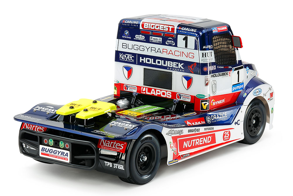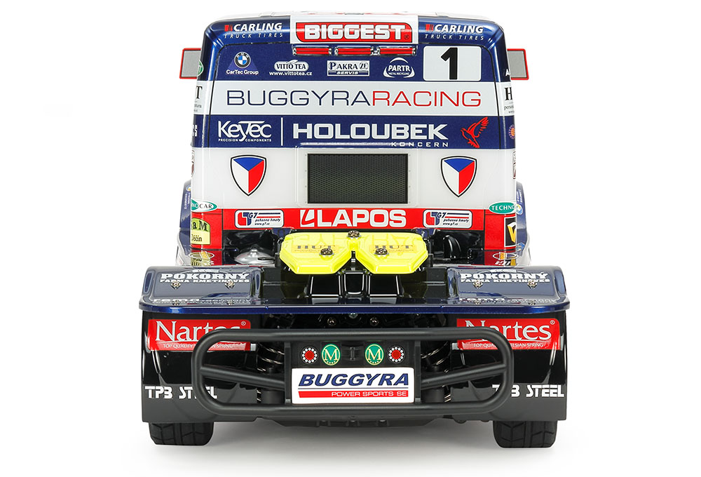 Buggyra Racing took a glorious brace of titles in the 2017 season of the prestigious truck racing circuit, becoming Drivers' and Constructors' Champions. This R/C model assembly kit recreates their 2018 season No.1 truck, the long-nosed form captured by a 4-piece body combined with separate molded parts for side mirrors. Stickers are included to depict the wealth of logos on the truck. Efficient, reliable shaft-driven 4WD is provided by the TT-01 Type-E chassis.