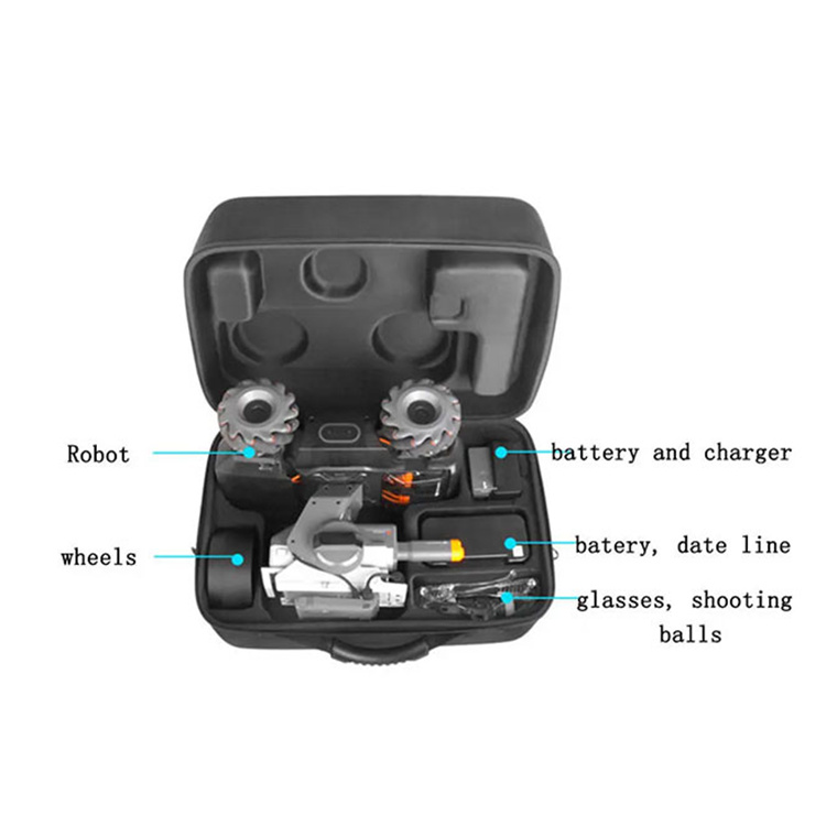 - Large capacity: can be used to store For DJI RoboMaster S1 Educational Robot, 5pcs of battery, charger, mecanum wheel mounting plate, safety goggles, bottled gel beads, screw box, screwdriver handle, cables charging wires and other accessories.