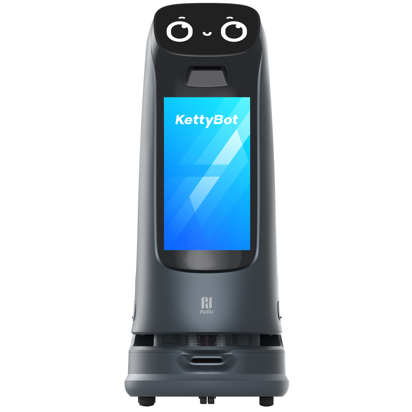 Pudu KettyBot Pro (Black) delivery & reception bot with Large Digital Screen ideal for displaying Advertisement or Messages to customers for improved Robot to Human experience. AI voice interaction; 8h battery, Load Capacity: 30kgs