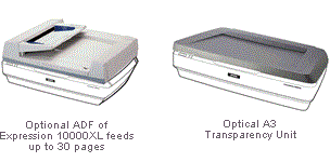 For graphics professionals, the EXPRESSION 10000XL's ability to scan at any size up to A3 is a major benefit. Now, documents such as brochures, magazines spreads and CAD/GIS drawings up to A3 can be scanned in a single pass. Adding even further to its broad scanning flexibility is the two-up A4 scanning; and with an optional Auto Document Feeder (ADF), the EXPRESSION 10000XL automates the otherwise time-consuming task of scanning documents of up to 100 pages.