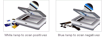 Another speed enhancing characteristic of the EXPRESSION 10000XL is its new bluish lamp. This innovative technology addresses the traditional problem associated with using pure white light to scan negatives, which requires longer exposure time for blue image data. With its bluish lamp, the scanner has a much shorter exposure time for blue, resulting in higher speed scanning of negatives.
