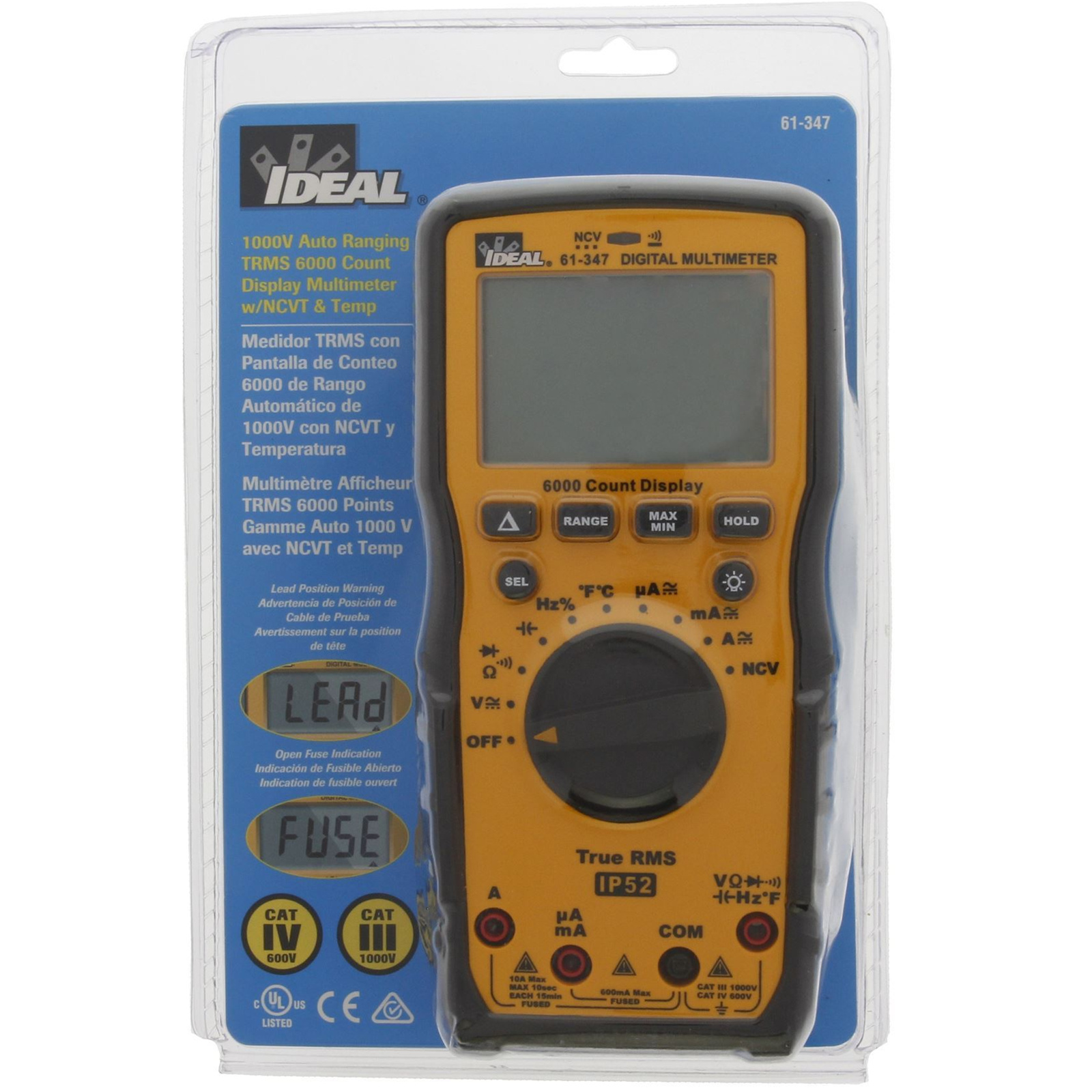 Ideal Industries IDL61-347 1000V AC/DC Multimeter. CAT IV 600V and CAT III 1000V Rating.