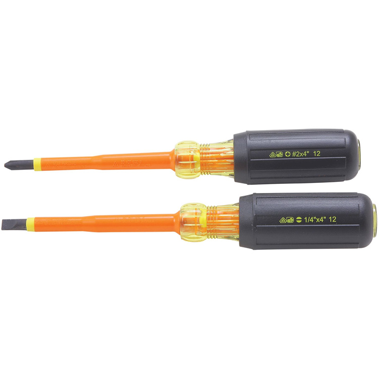 Ideal Industries IDL35-9305 2-Piece Insulated Screwdriver Kit. Includes: Slotted 1/4 Inch x 4 Inchand Phillips Number 2 Insulated Screwdriver with 4 Inch Dual Injection Molded Insulated Shaft.