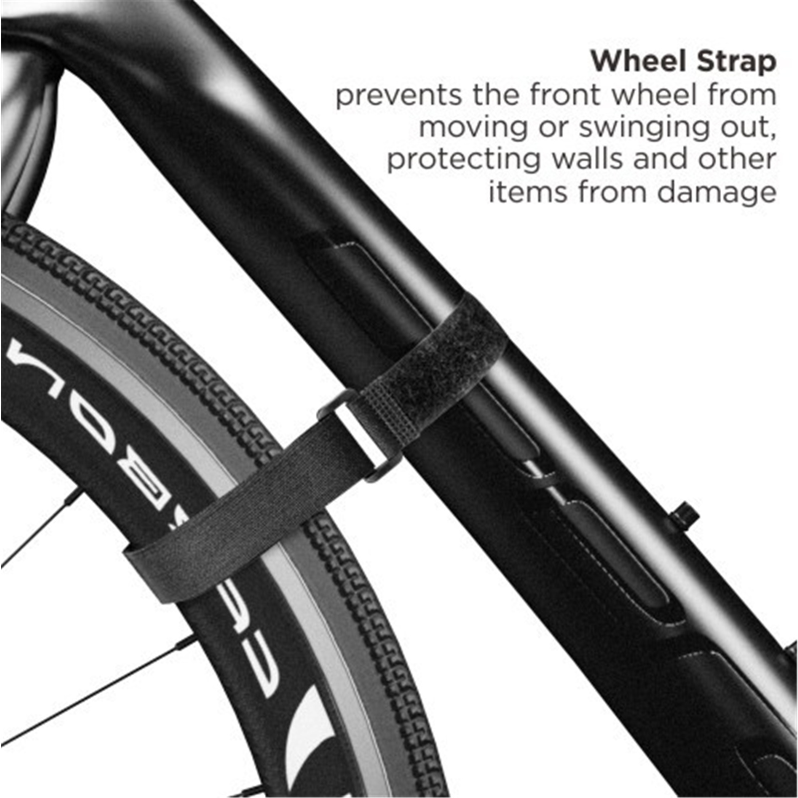 - Wheel strap prevents the front wheel from moving, protecting walls and other items from damage