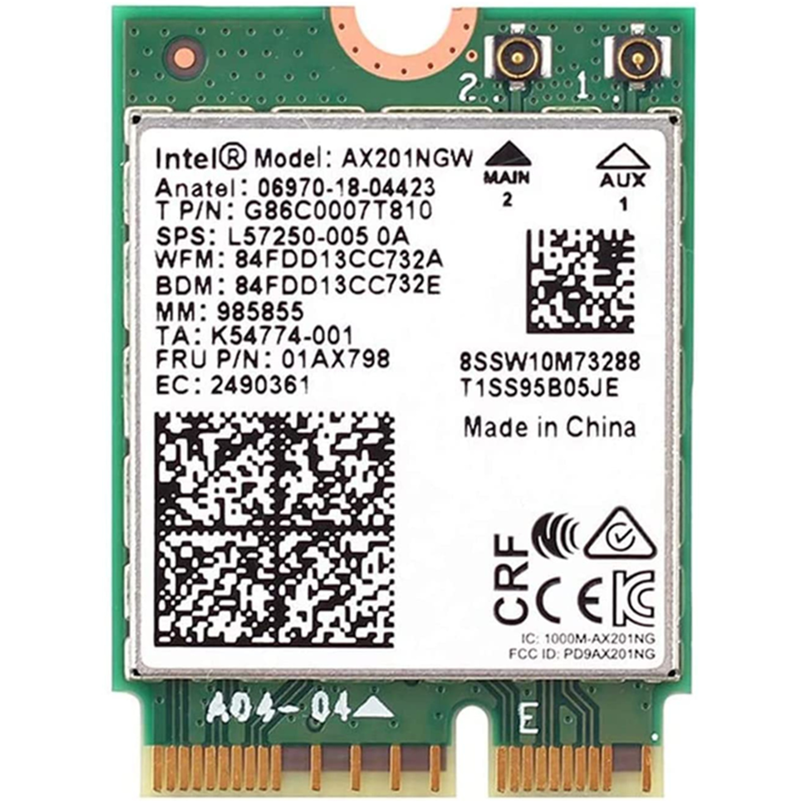 Intel AX201 Dual Band WiFi 6 + Bluetooth 5.1 Internal M.2 Wireless Adapter AX201NGW - 802.11AX - Windows 10 / 11 64-bit - PN: 01AX798 (OEM Package)