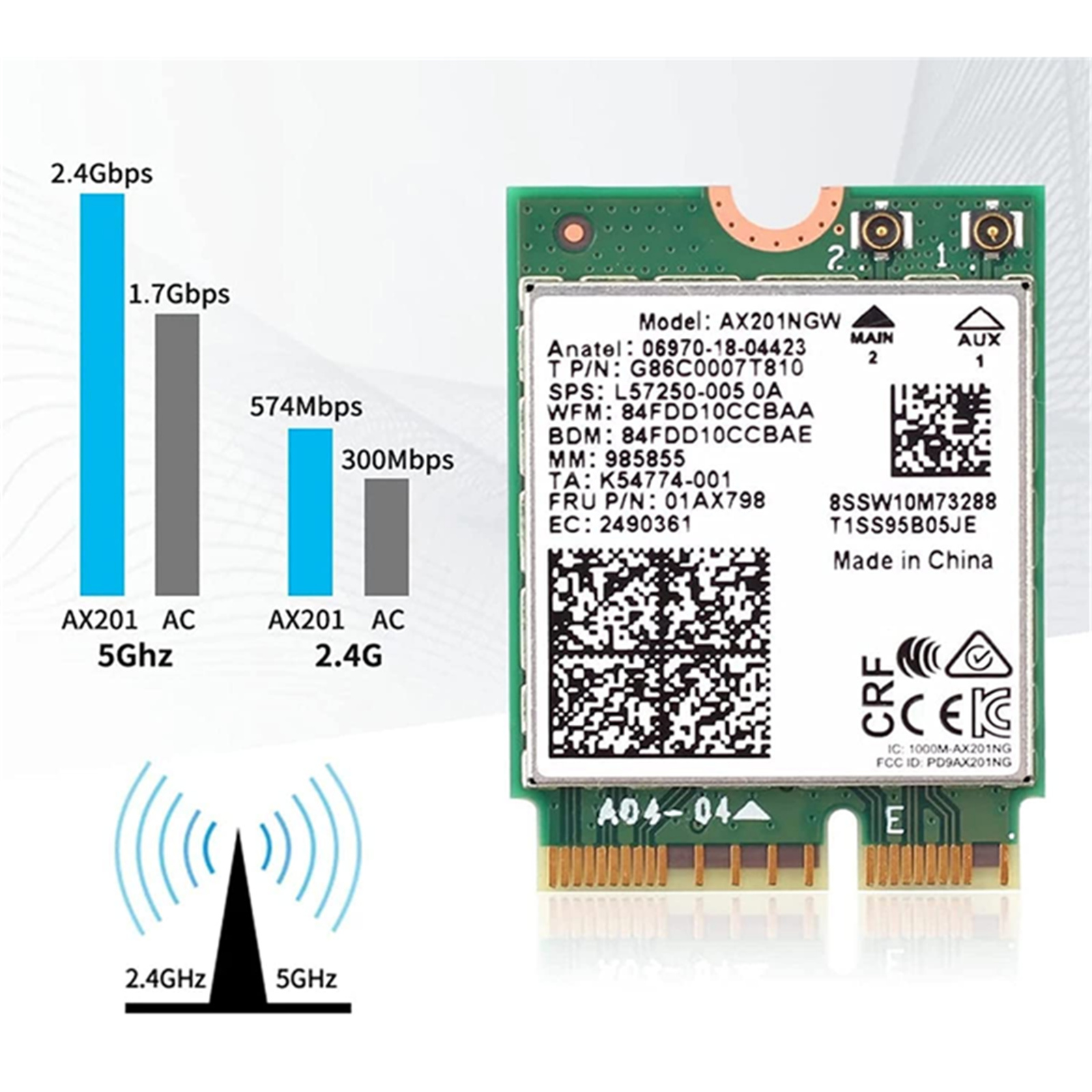 Intel AX201 Dual Band WiFi 6 + Bluetooth 5.1 Internal M.2 Wireless Adapter
