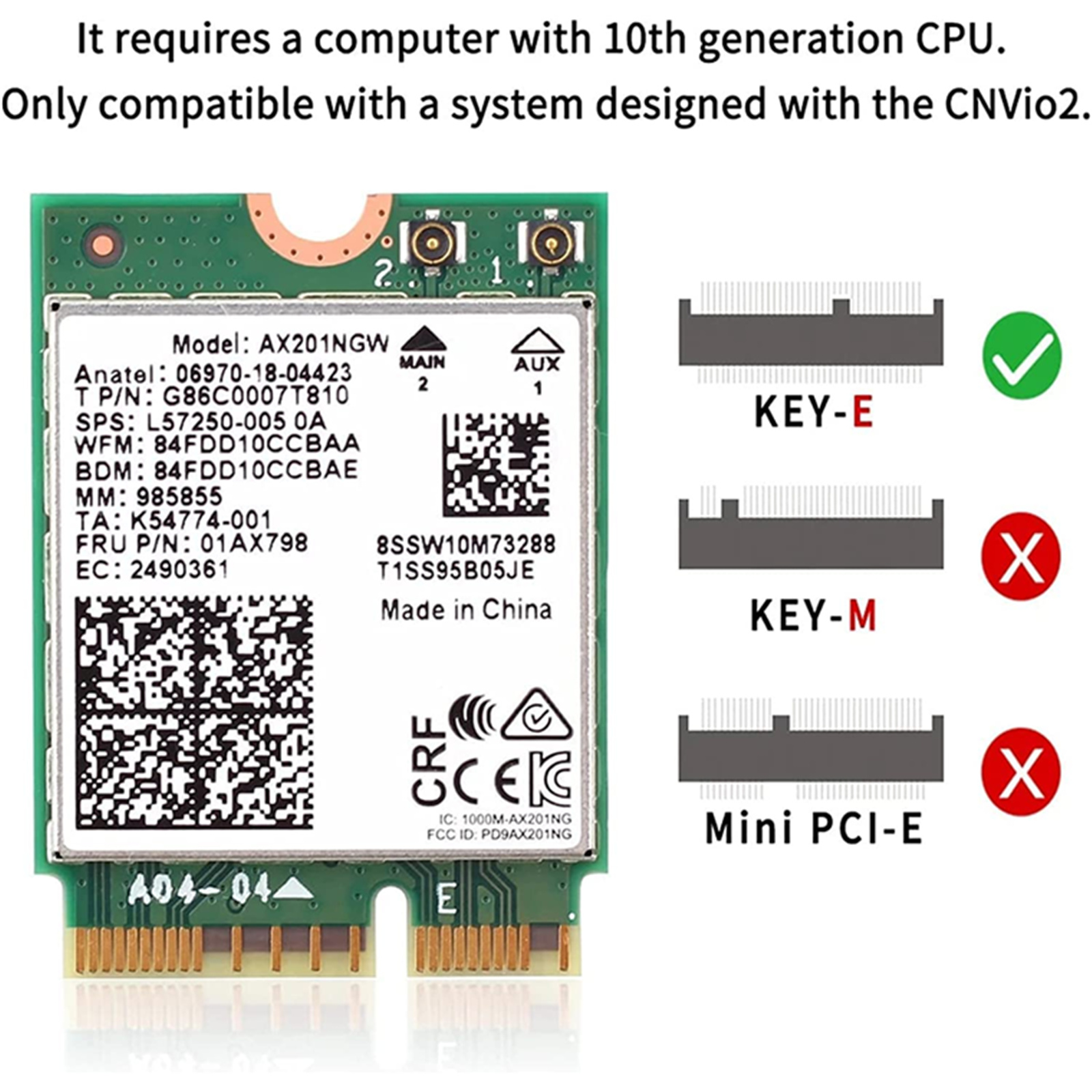 - Connector Interface: M2:CNVi 2, not the CNVI 1 ,Not for NGFF key A/E Wifi card slot