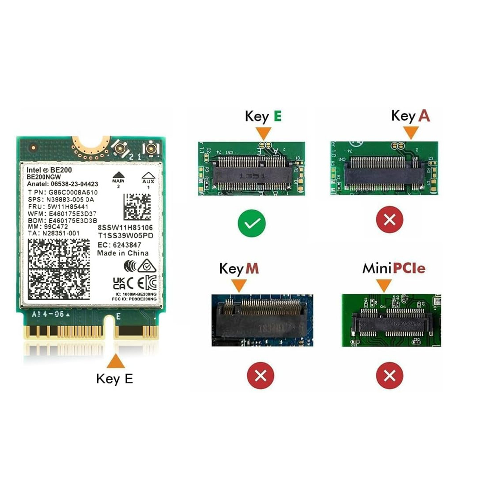 Intel BE200 WiFi 7 + Bluetooth 5.4 Internal M.2 Wireless Adapter 2.4G/5G/6GHz - Supports Win10 / 11 - Not Compatible with AMD