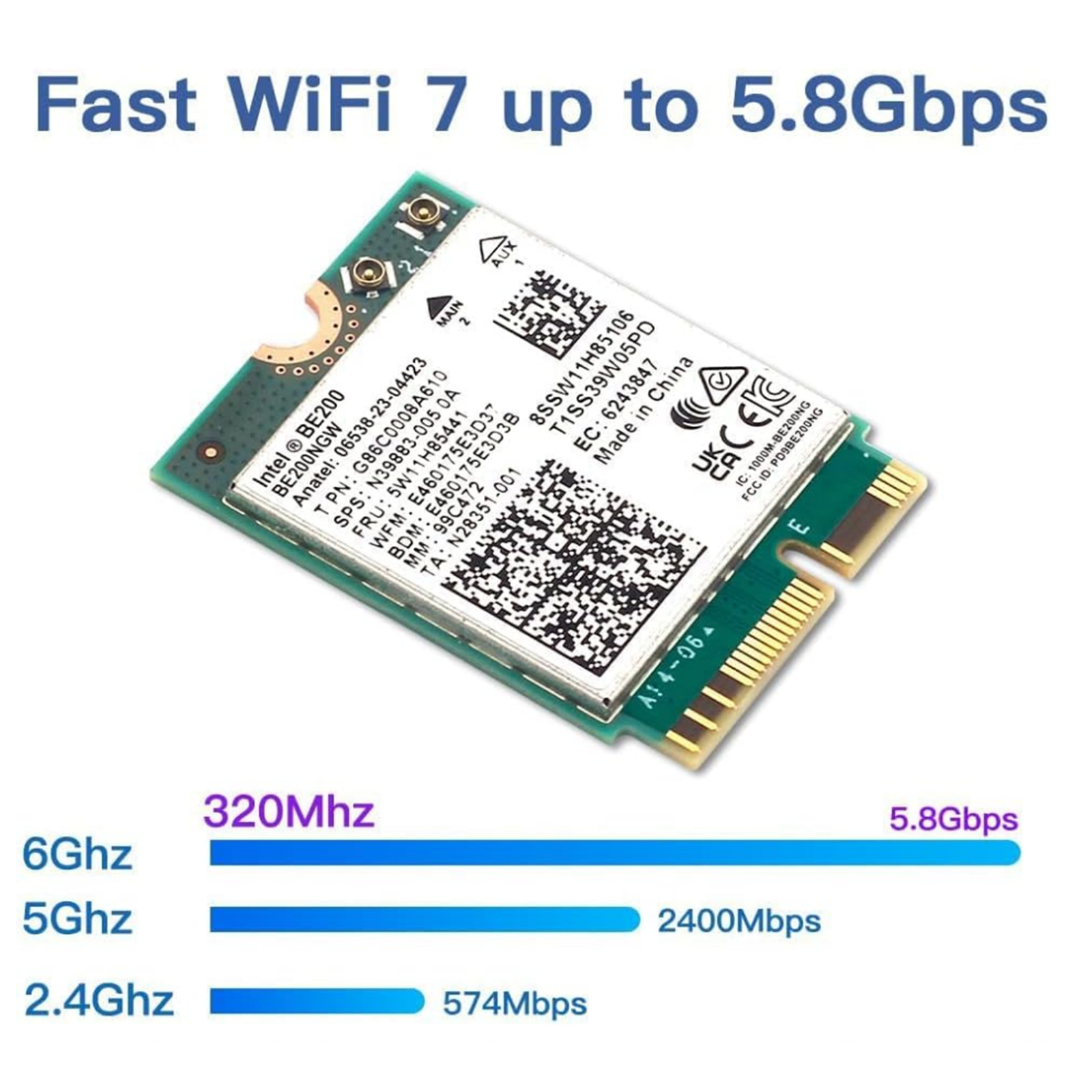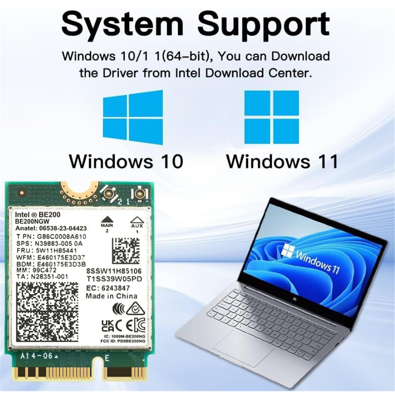 OEM Intel BE200 Internal M.2 Wireless Adapter WiFi 7 + Bluetooth 5.4 - Not Compatible with AMD 2.4G/5G/6GHz,Support Win10,11