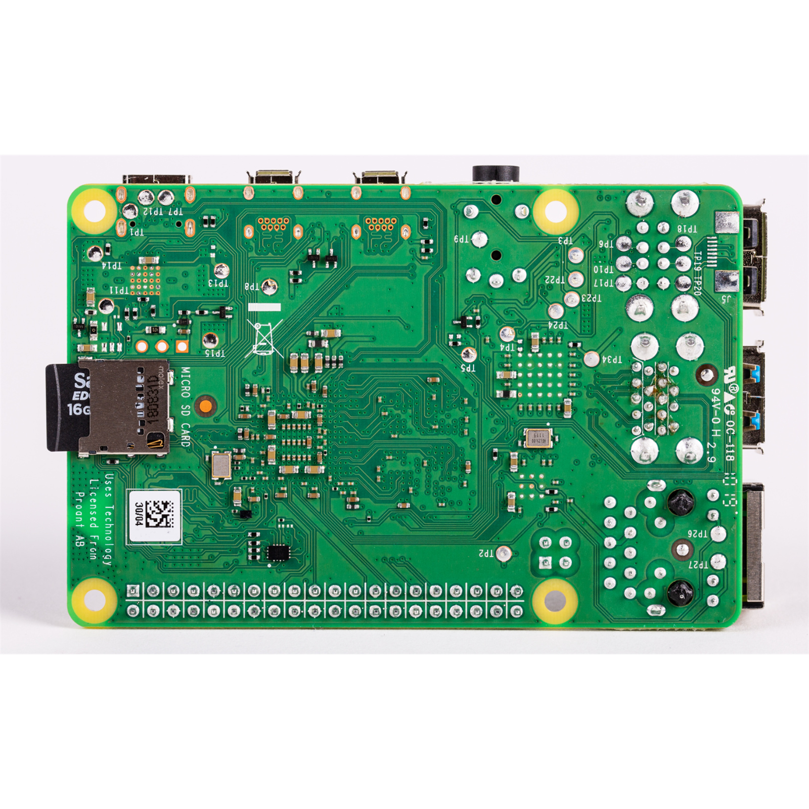Standard 40-pin GPIO header (fully backwards-compatible with previous boards)