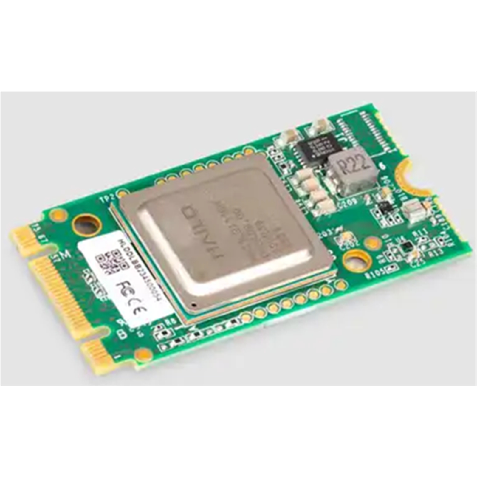 The AI module is a 13 tera-operations per second (TOPS) neural network inference accelerator built around the Hailo-8L chip. The module uses the M.2 2242 form factor, and comes pre-installed in the M.2 HAT+, to which it connects through an M key edge connector. The M.2 HAT+ communicates between the AI module's M.2 interface and the Raspberry Pi 5's PCIe 2.0 interface.