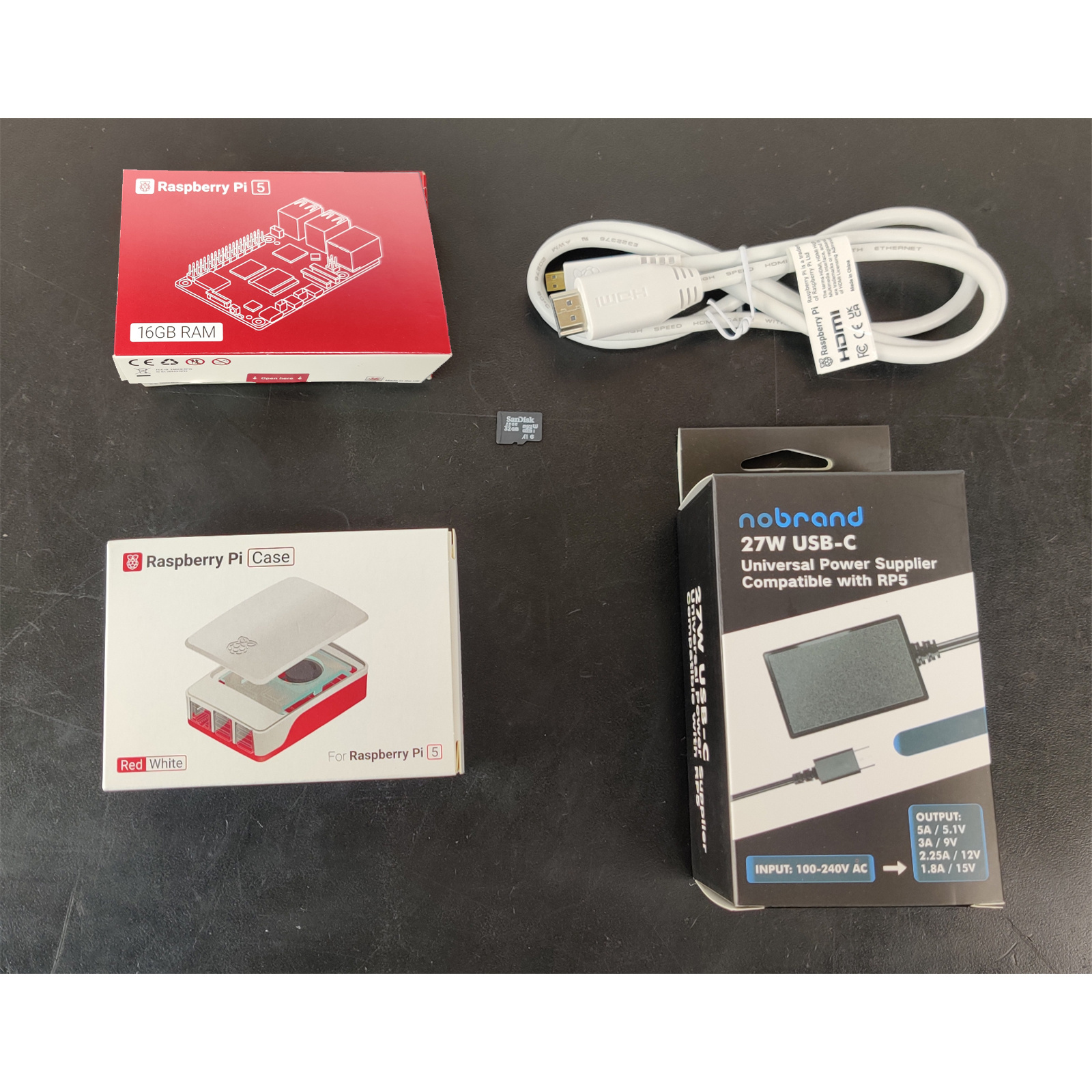 - 1 x Raspberry Pi Official White & Red Case with fan for Raspberry Pi 5