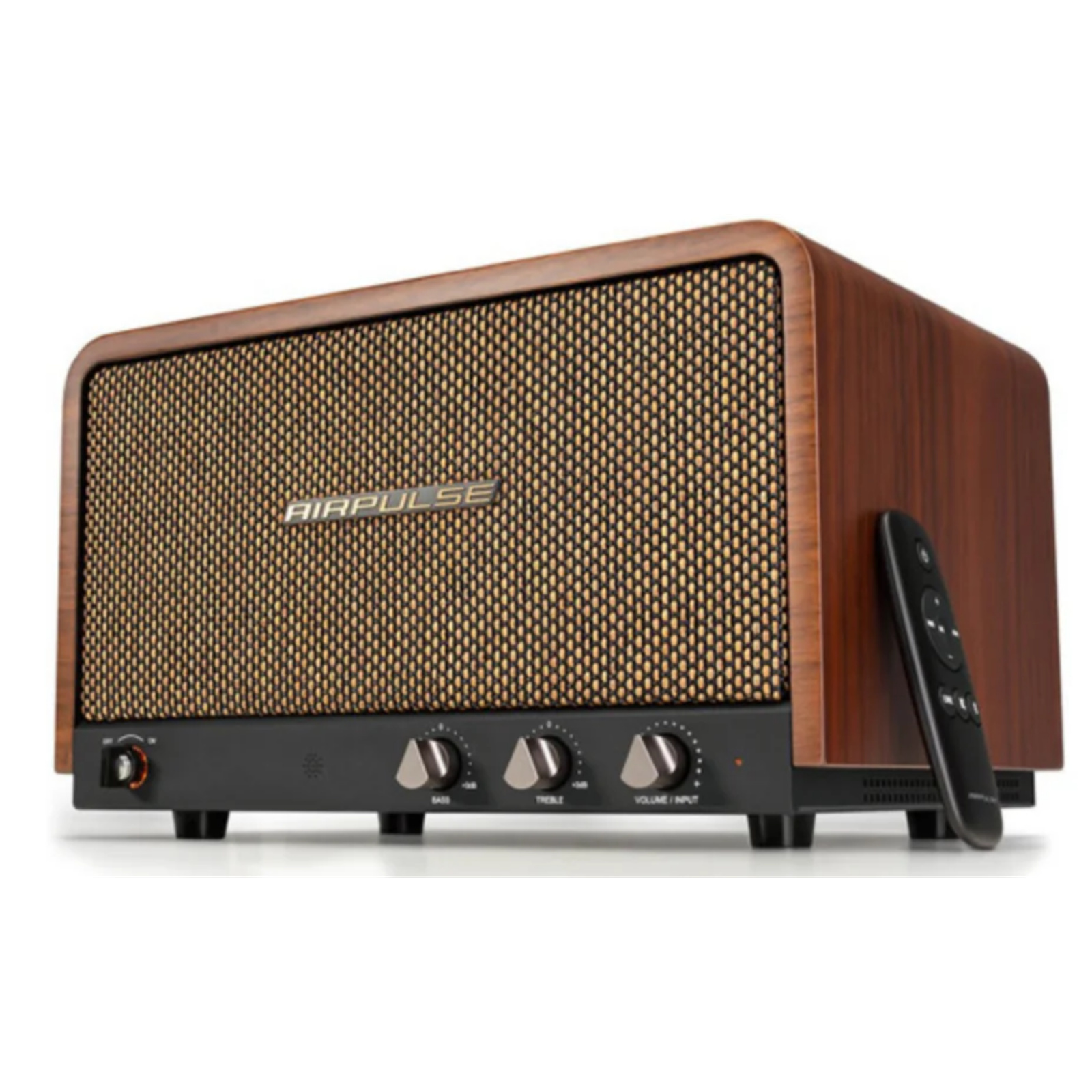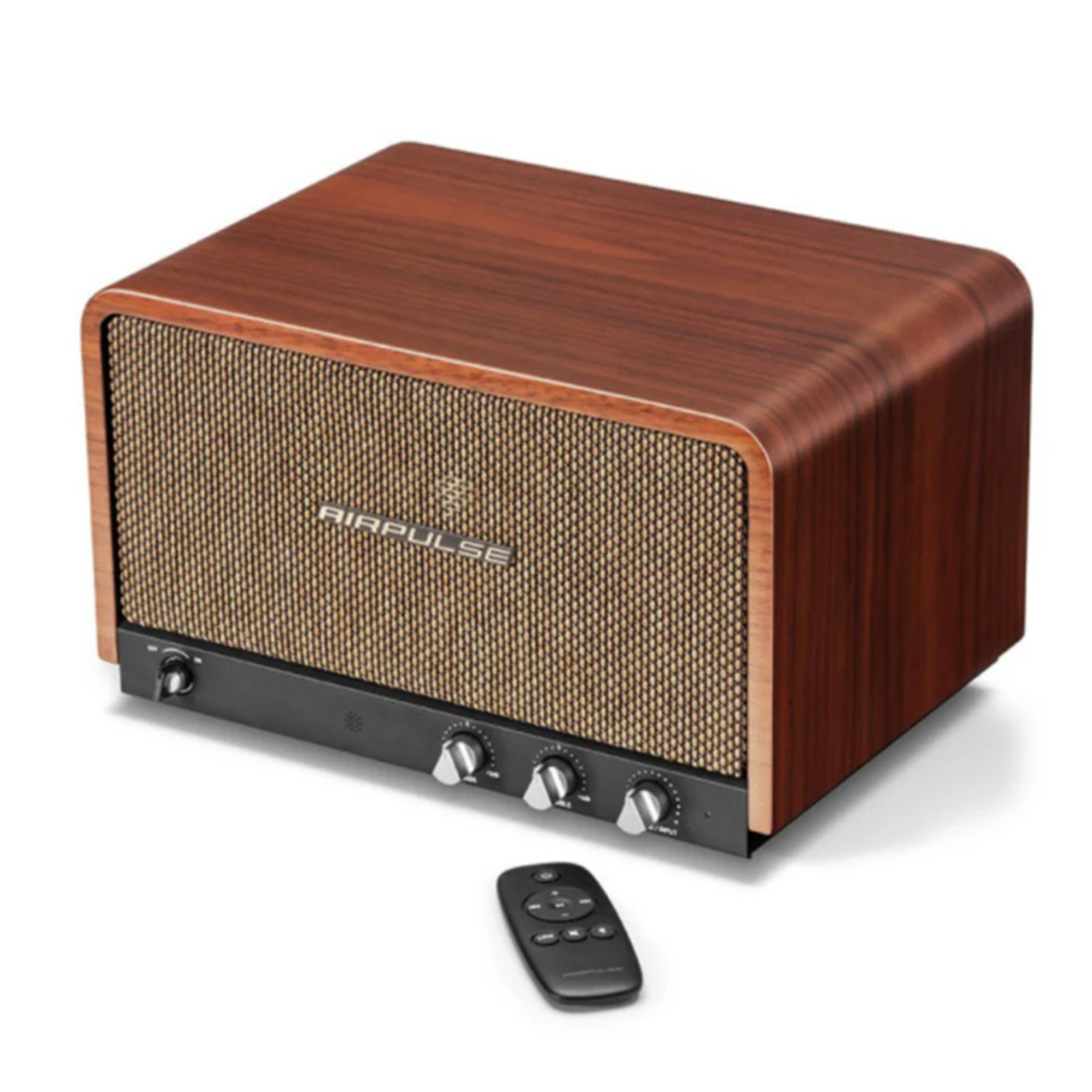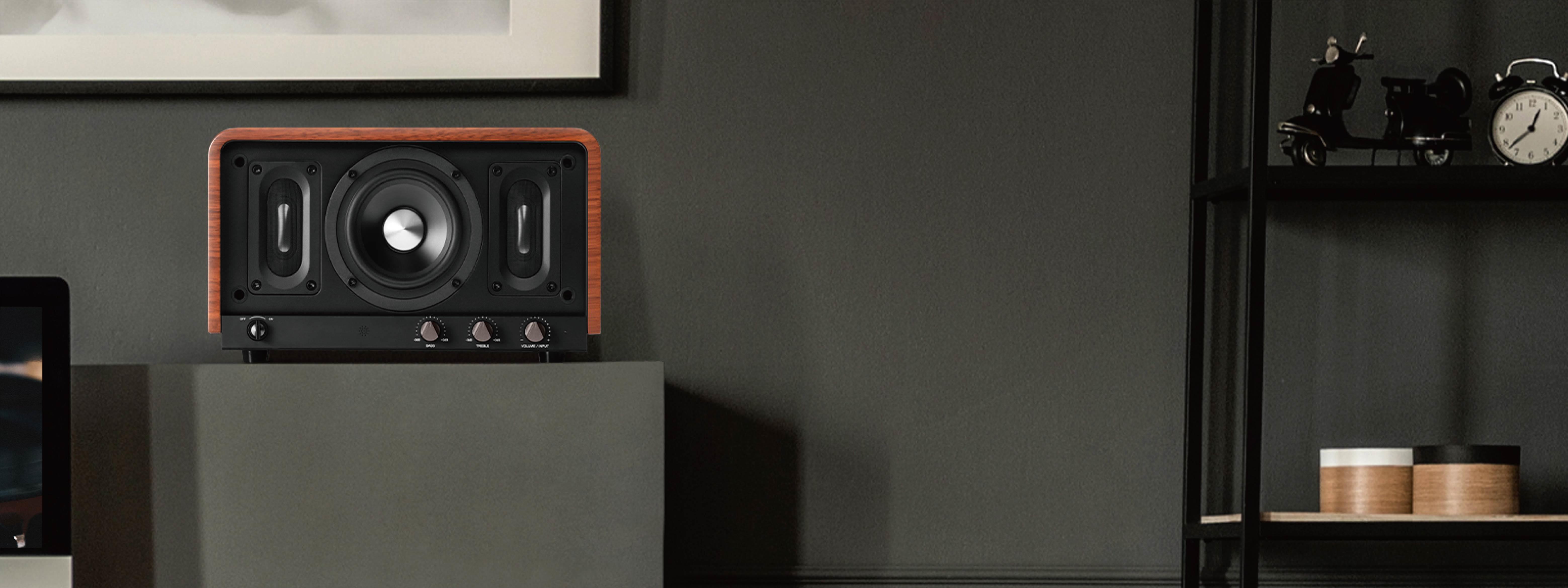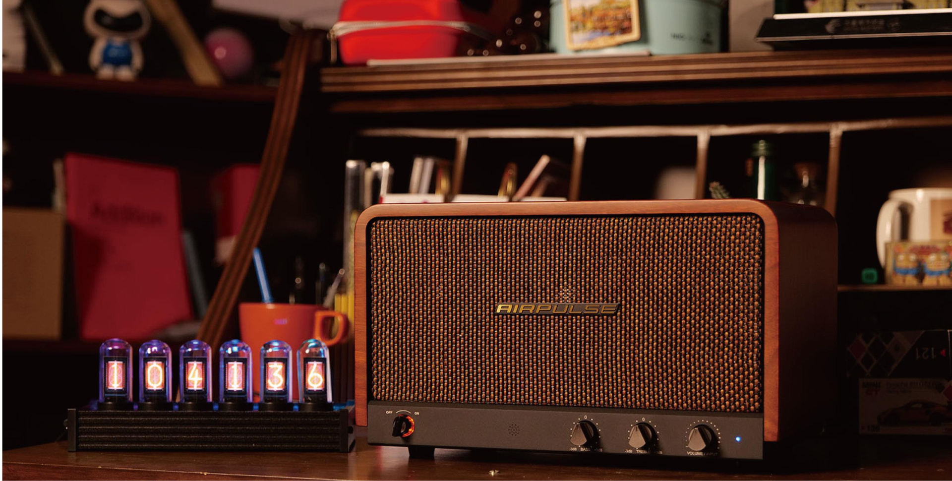 The AIRPULSE P100X is a multi-driver wireless desktop speaker system. Designer of P100X packs multiple drivers into the system, including a pair of patented A-Blade tweeters, and one proprietary 4.5-inch long-throw mid-woofer with an Aluminum diaphragm. With Qualcomm Bluetooth audio receiver and high-end digital power amplifier platform, all components are fine-tuned to work together seamlessly, housed in this well-constructed compact size cabinet with a retro appearance.